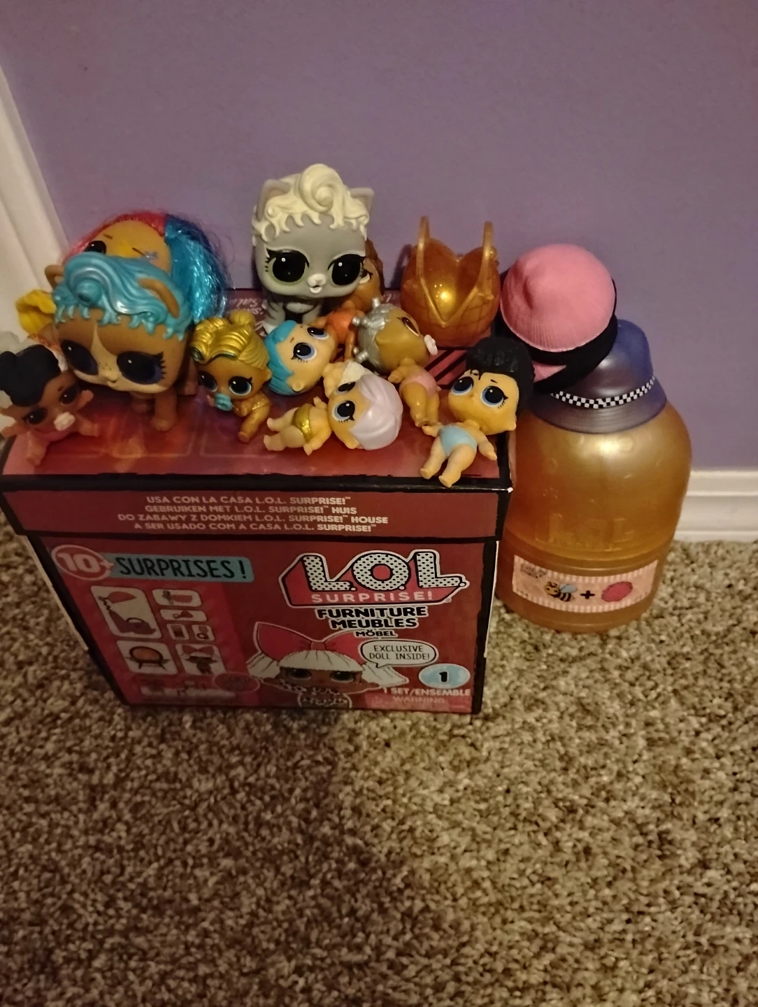 Selling a collection of L.O.L. Surprise! dolls and furniture pieces! Includes a variety of dolls and accessories for imaginative play. Perfect for any L.O.L. Surprise! fan! 1 doll, 7 baby dolls, 1 bag, 2 pets, 3 hats, 1 kinetic sand play, and 1 play house. 16 peices in total. ❗LITTLE PEICES TINY CHILDREN CAN CHOKE ON❗