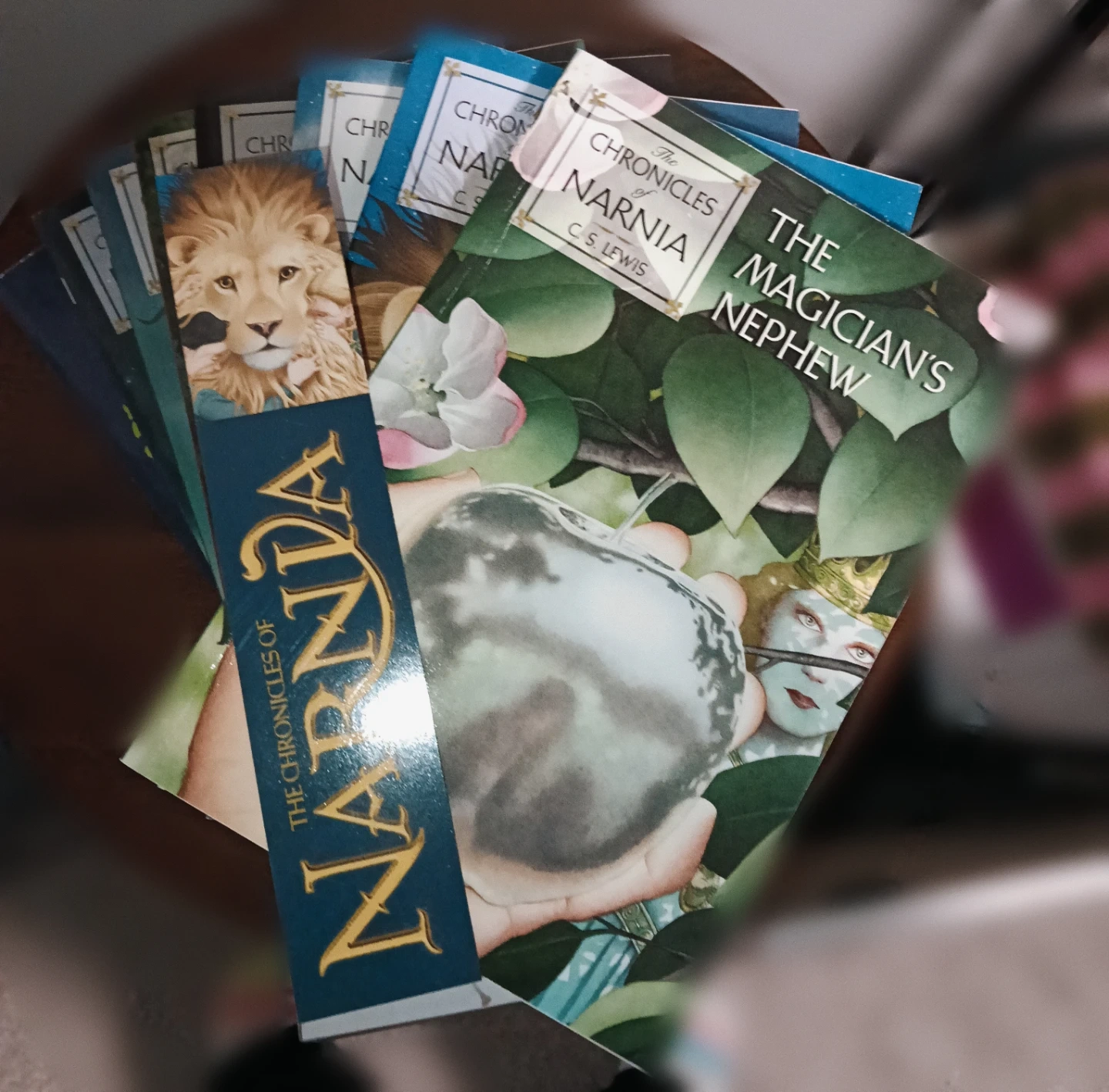 Selling a complete set of The Chronicles of Narnia books by C.S. Lewis! This includes all seven books in the series, plus The Narnia Trivia Book. Perfect for any Narnia fan or anyone looking to dive into this classic series. As well as a Narnia Bookmark!!