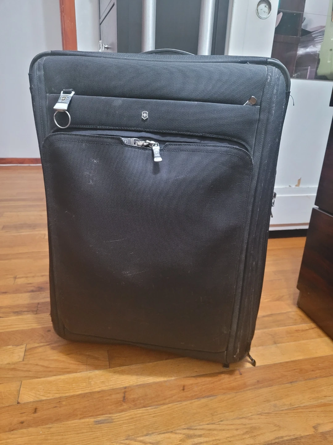Selling a black Victorinox carry-on suitcase. It has some signs of use, as you can see in the photos, but still has a lot of life left in it!