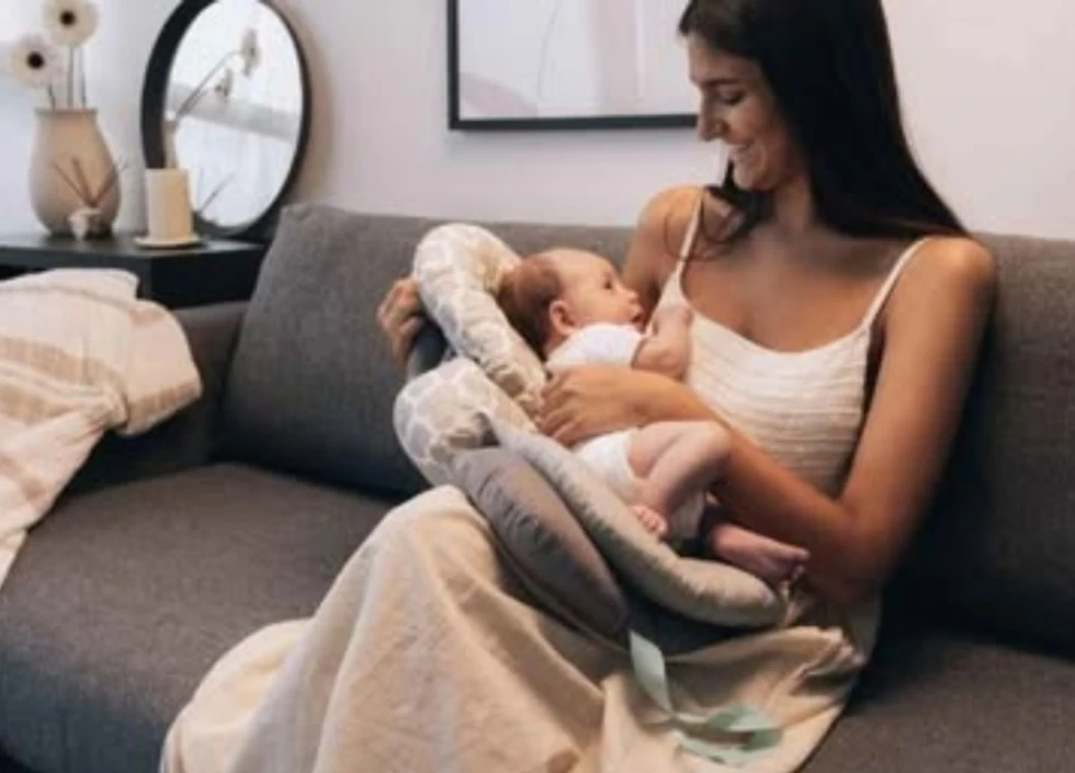 Nursing Pillow for Breastfeeding and Bottles, Ideal for Feeding Newborns 0-5 Months, 100% Cotton, Adjustable Support Cushion for Parent Use, Mom - Dad