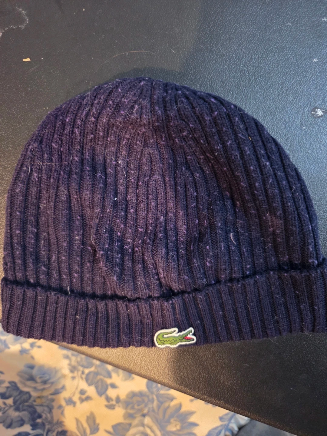 10Selling a Lacoste knit beanie! It's a stylish and comfortable hat, perfect for keeping warm during the colder months. The beanie features the iconic Lacoste logo. It's in great condition and ready to wear!
