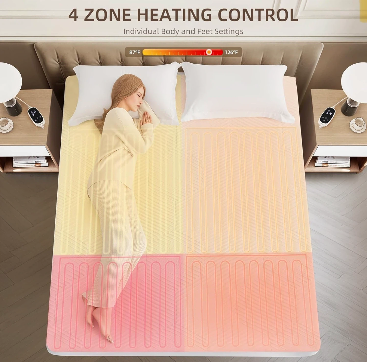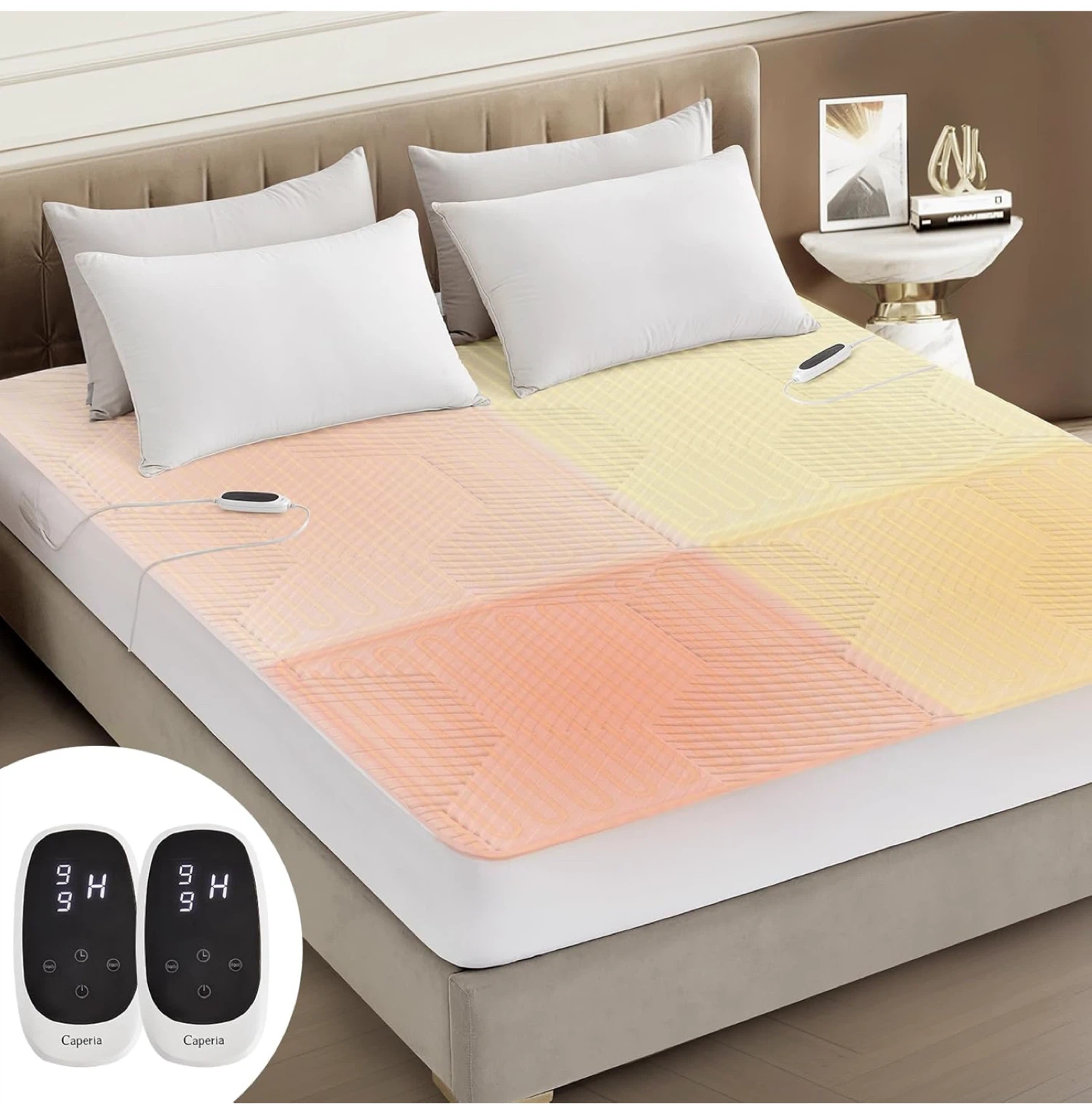 Snuggle up with this Caperia heated mattress pad! It features 4 zone heating control, so you can customize the warmth for your body and feet.