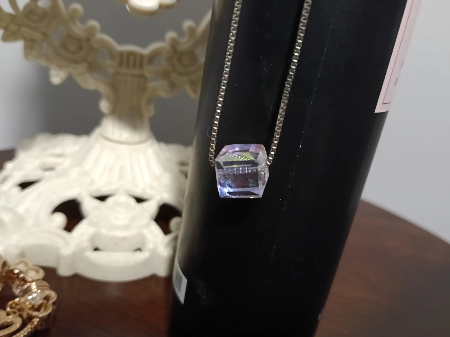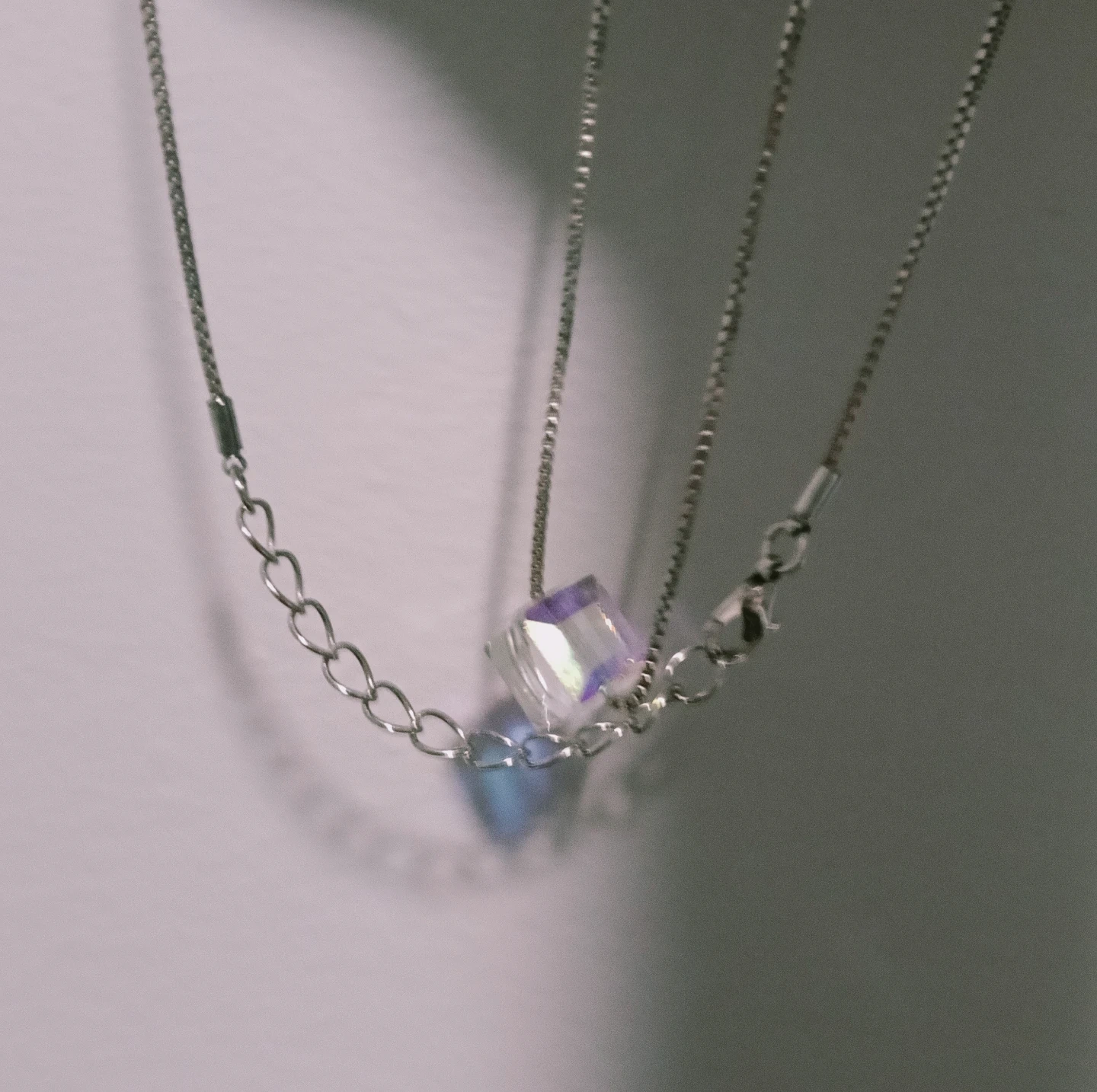 A cute cube pendant necklace with a silver chain. It's in great condition and ready to add a little sparkle to your day! 🥰