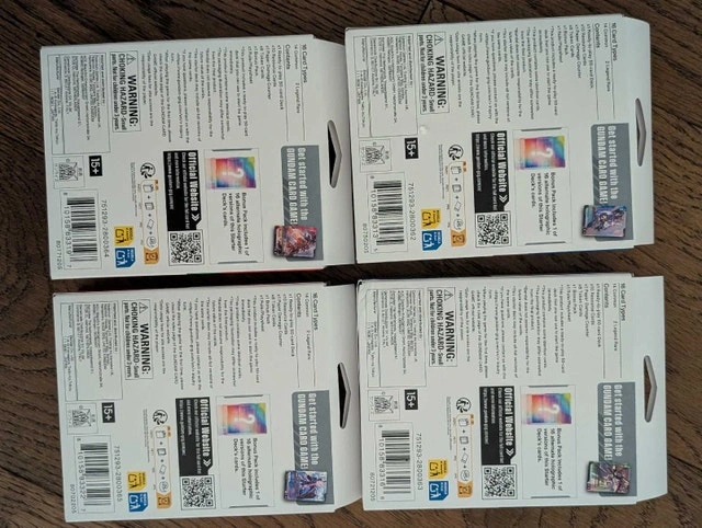Selling the set for $300. English ST 01 Heroic Beggining ST 02 Wings of Advance ST 03 Seed Strike ST 04 Zeon's Rush Mainly pickup at Markham intersection of 16th Ave and BurOak Or Etobicoke intersection of Finch and Carrier Dr, Scarborough town center, Fairview Mall on certain weekdays