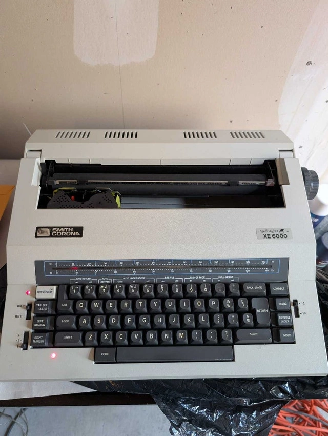 Smith Corona XE 6000 typewriter. It comes with the original instruction manual. Powers on, appears to function with button. Not tested with ink and paper. Selling as is. Mainly pickup at Markham intersection of 16th Ave BurOak or Etobicoke intersection of Finch and Carrier Dr or Scarborough town center on certain weekdays