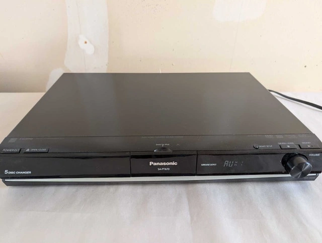 Panasonic SA-PT670 DVD home theatre sound system. It has a 5 disc changer and a dock for iPod. Remote control unavailable. Pick up at Markham (16th Ave and BurOak), Etobicoke (Finch and Carrier Dr) or Scarborough Town Centre on certain weekdays.