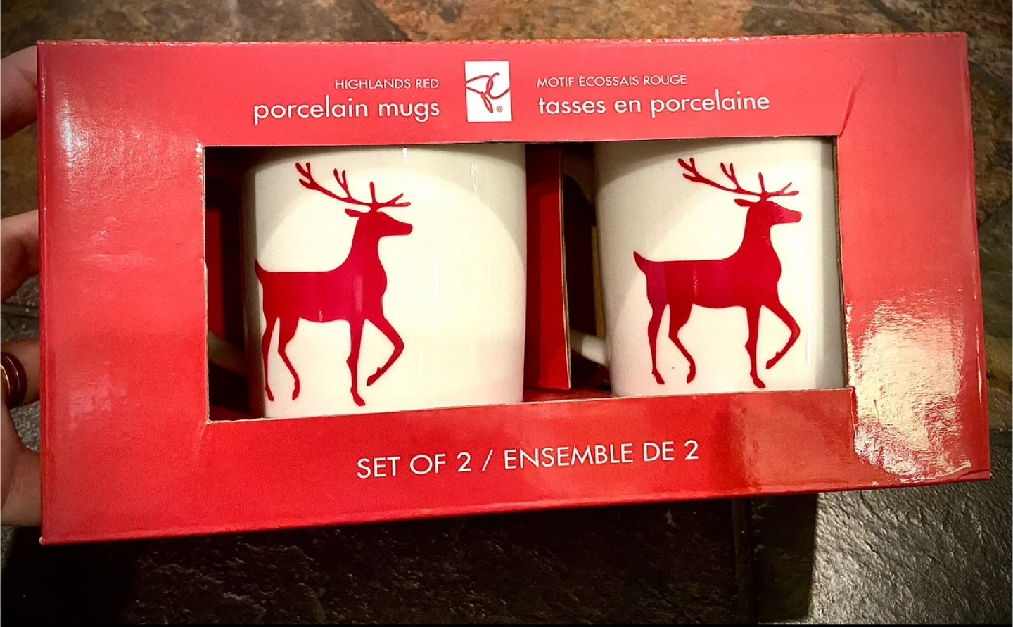 NEW CHRISTMAS Reindeer Porcelain Mugs - Set of 2
