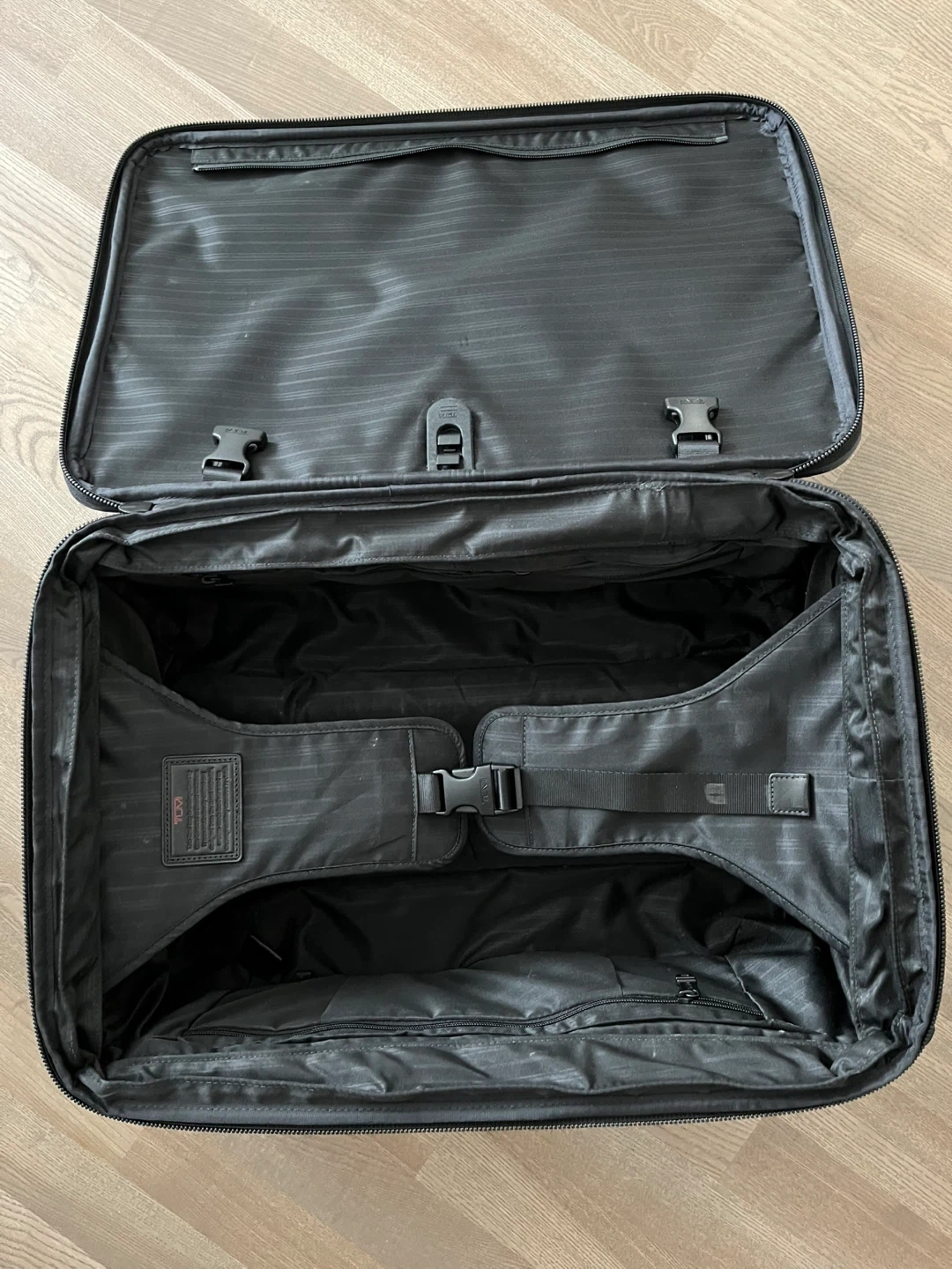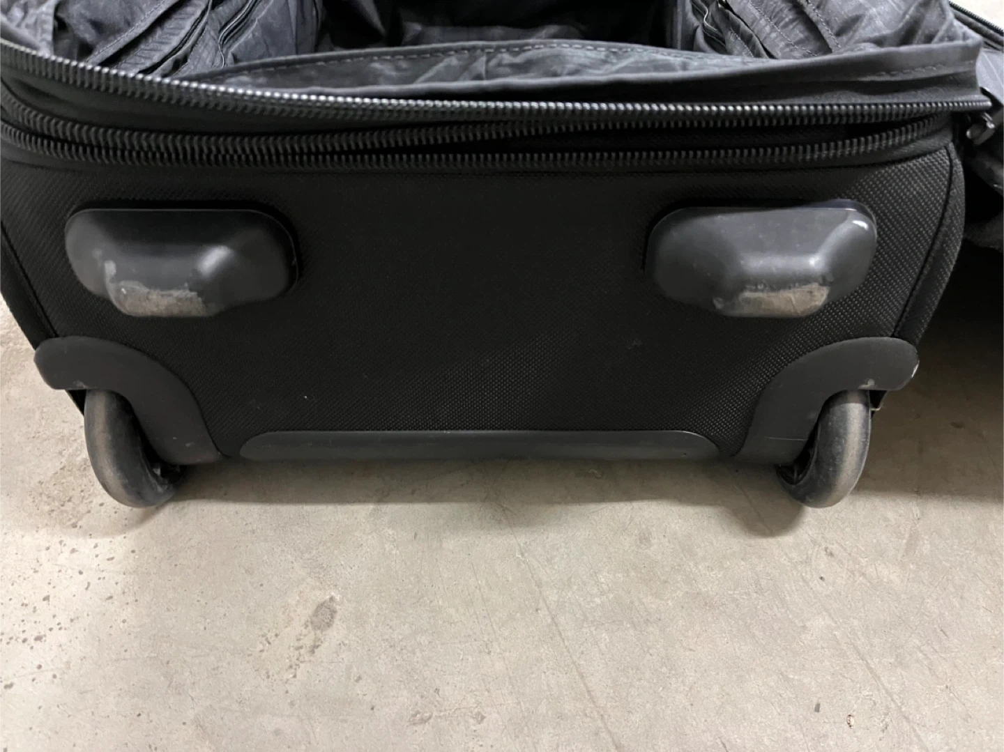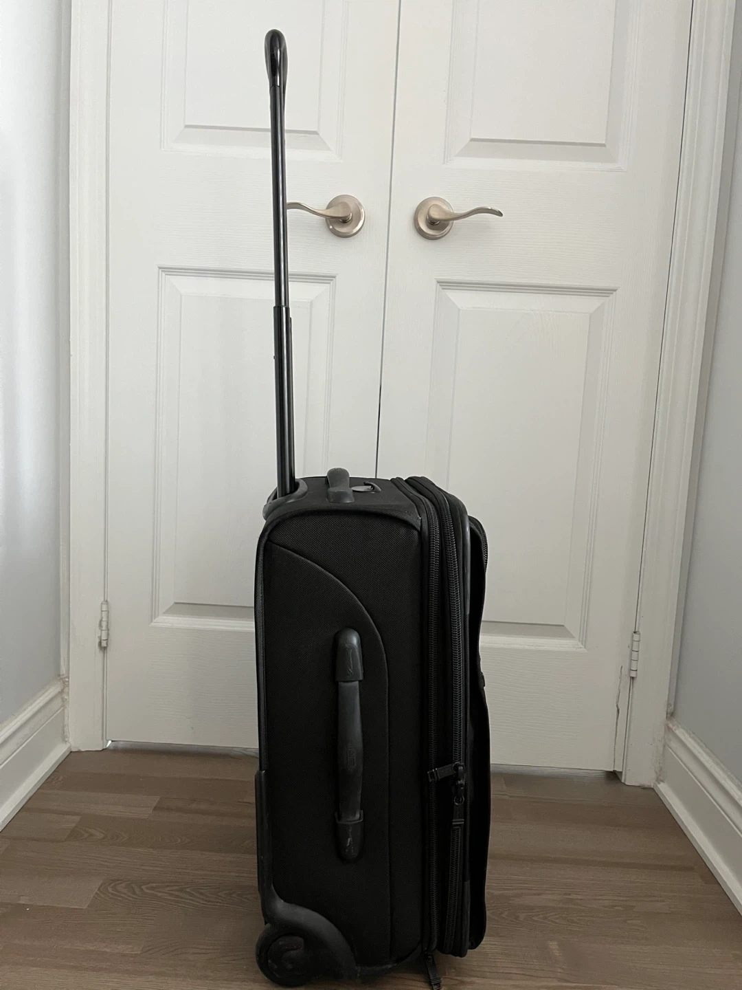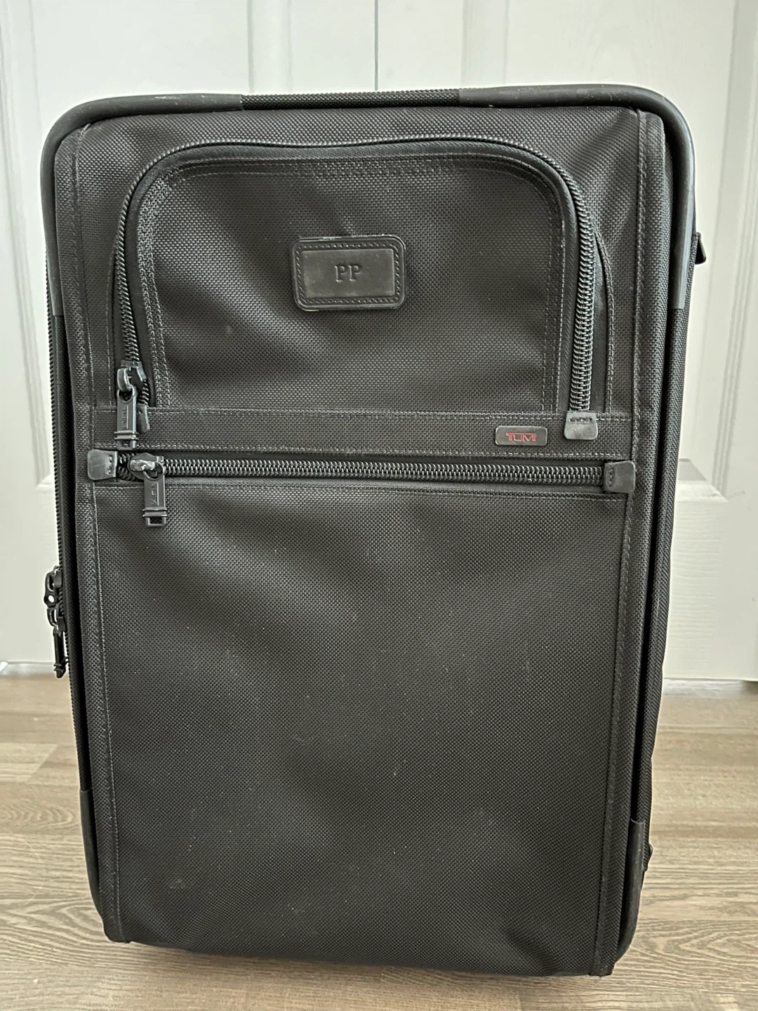 Selling a Tumi carry-on suitcase in black. It's in great shape and ready for your next trip! It has a retractable handle and wheels for easy transport.