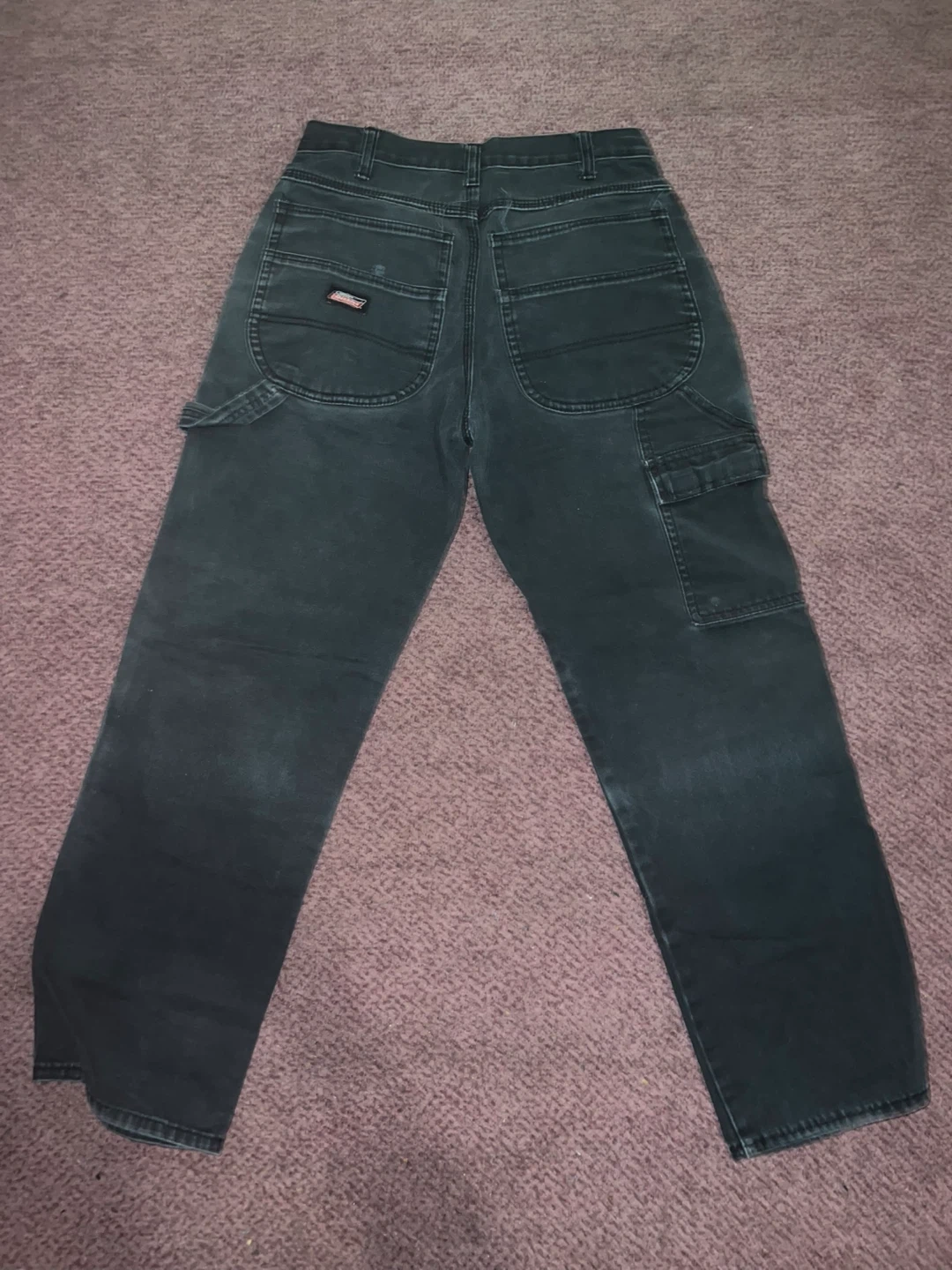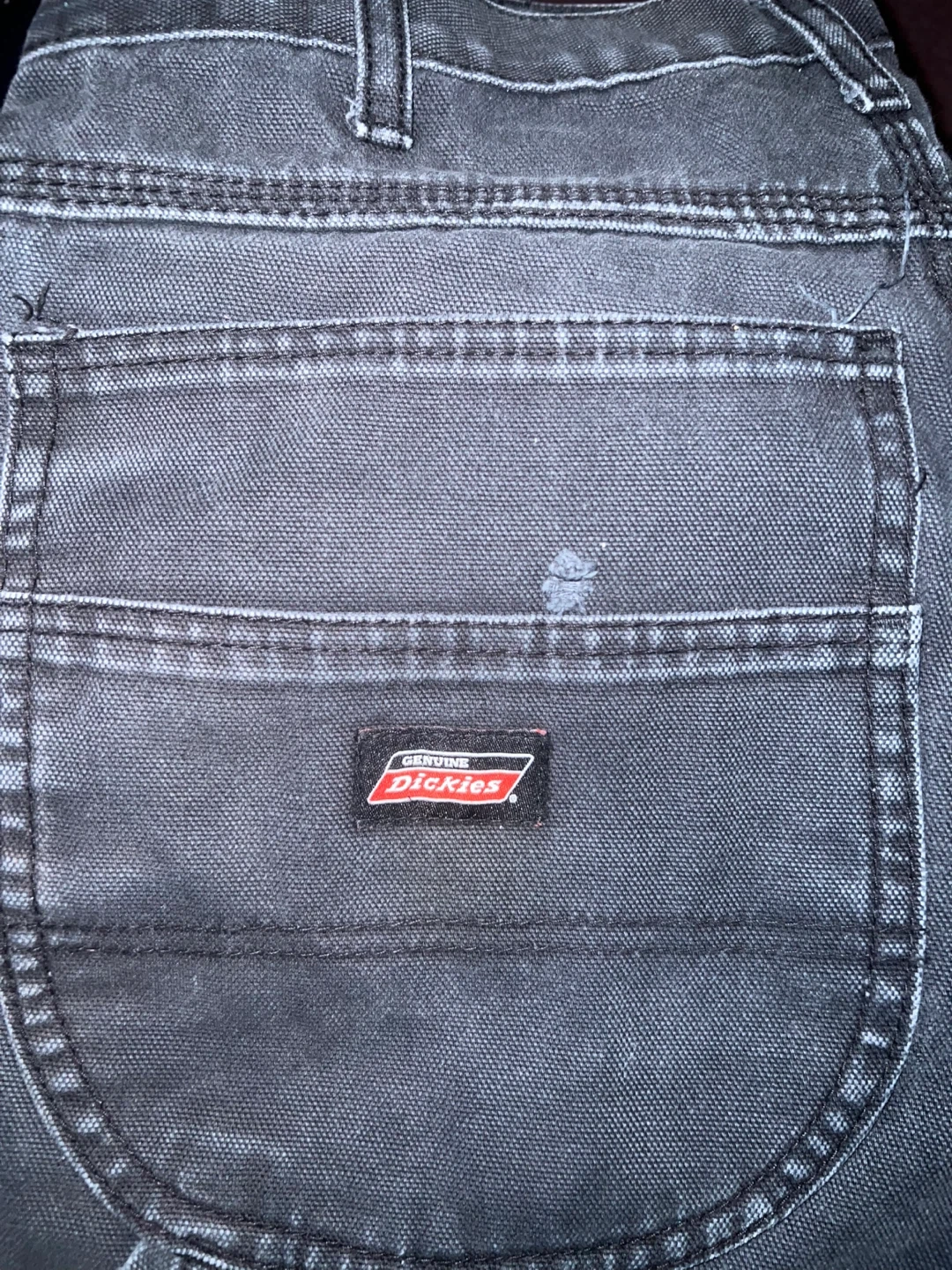 Selling a pair of Dickies carpenter jeans in black. They have a few signs of wear, but are still in good condition and ready for a new home! Perfect for work or casual wear.