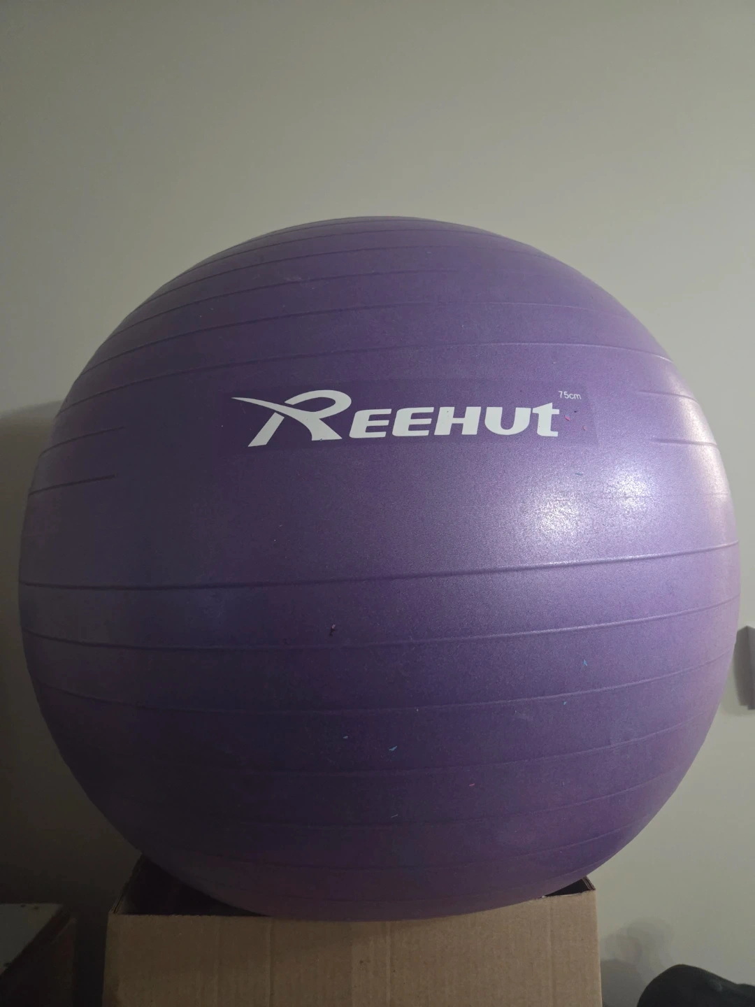 Selling a Reehut exercise ball in purple! It's 75cm in size and great for workouts or as a desk chair. There are a few minor scuffs, but it's still in good condition and ready to use