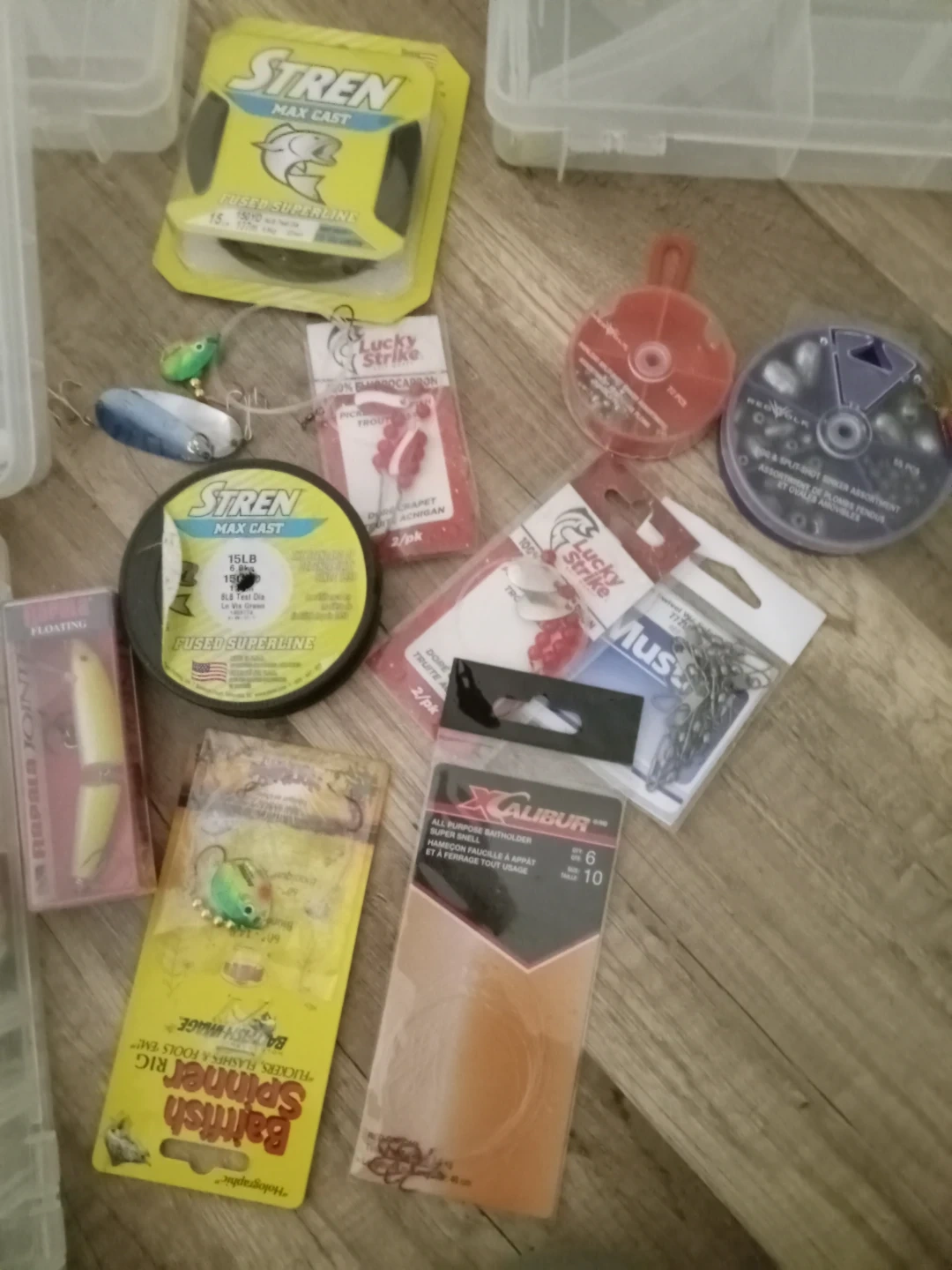 10Selling a mixed lot of fishing tackle! Includes Stren Max Cast line, Lucky Strike accessories, and other bits and bobs for your next fishing adventure