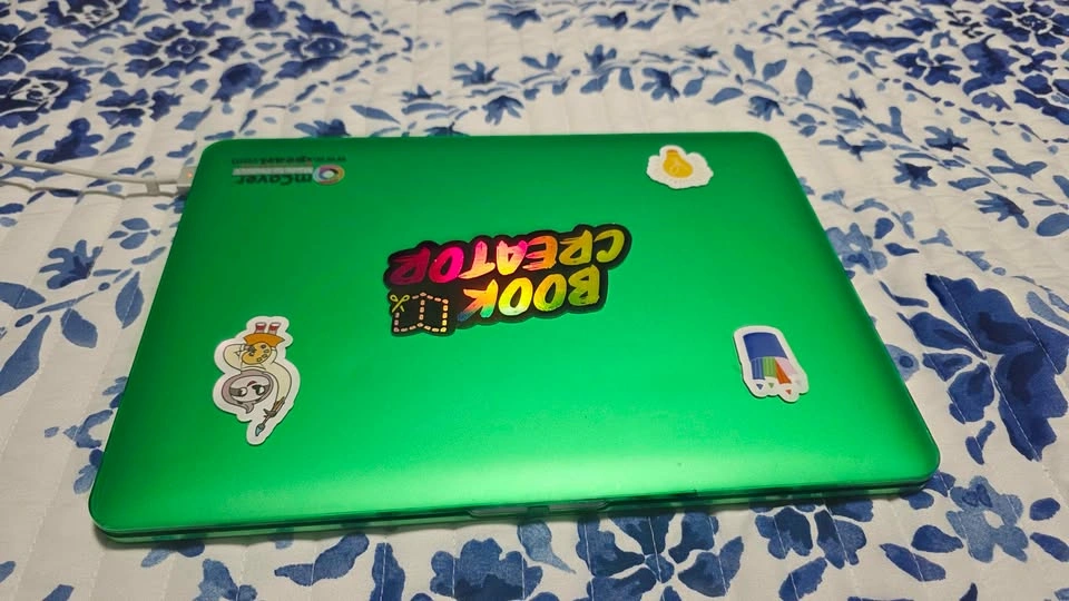 Included accessories: charger (almost brand-new) + stylish green keyboard cover + matching front/back green protective covers