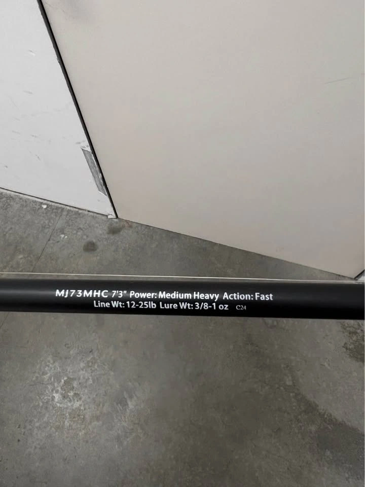 The Lew's Mach Jacked Baitcast Combo, specifically the MJ1SH73MH model, is a right-hand retrieve casting combo with a 7'3" medium-heavy, fast action rod and a 7.5:1 gear ratio baitcast reel. Key specifications include a 9+1 bearing system, 12-25 lb line rating, 3/8-1 oz lure rating, 20 lb max drag, and a 95mm aluminum handle.