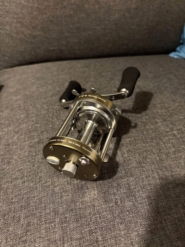 Construction: Brass main gear and crankshaft, anodized aluminum spool
