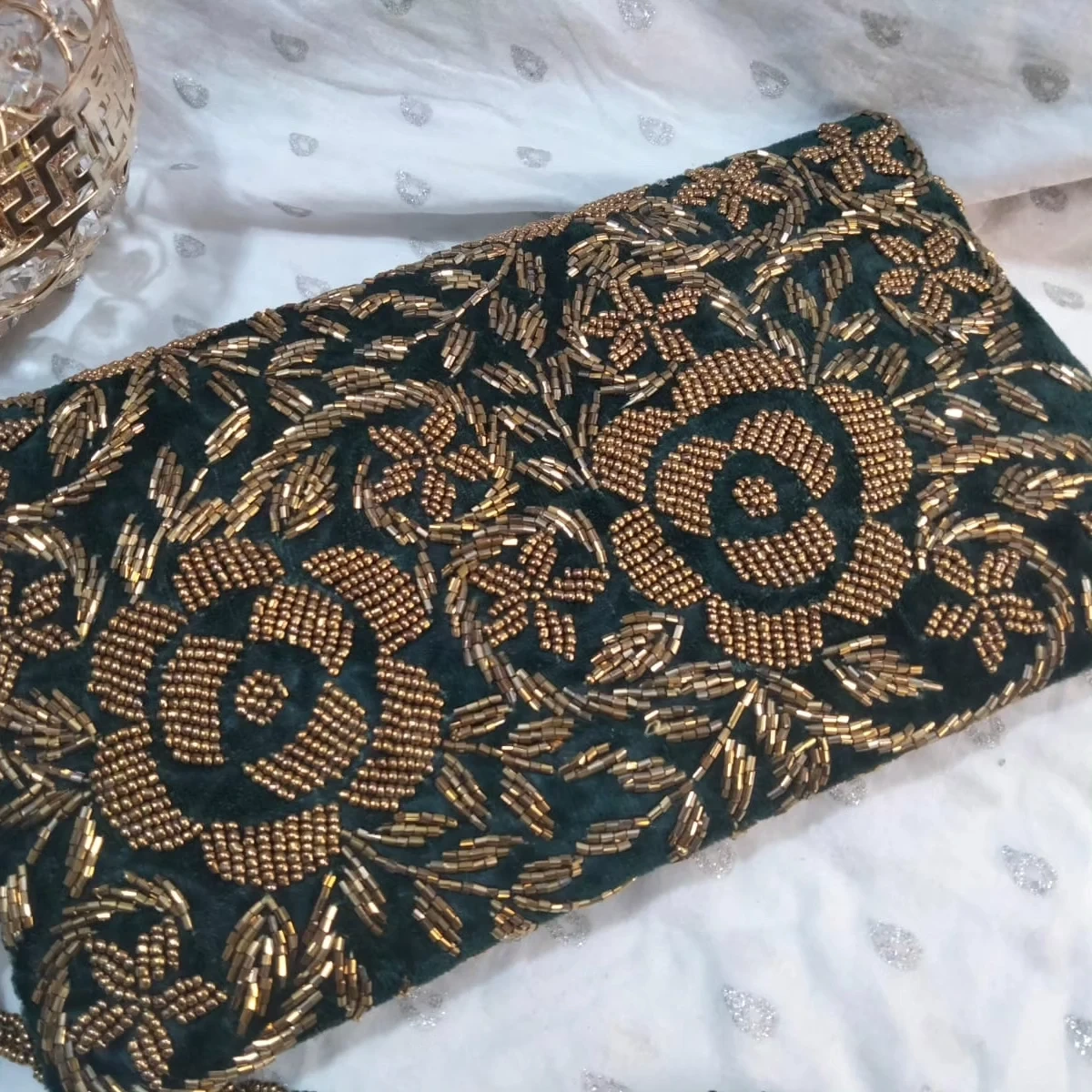 fantasia_bd These are beautifully handcrafted, fully beaded clutches made from high-quality 9000 velvet. Each clutch is adorned with intricate floral beadwork, giving it a luxurious and elegant look.