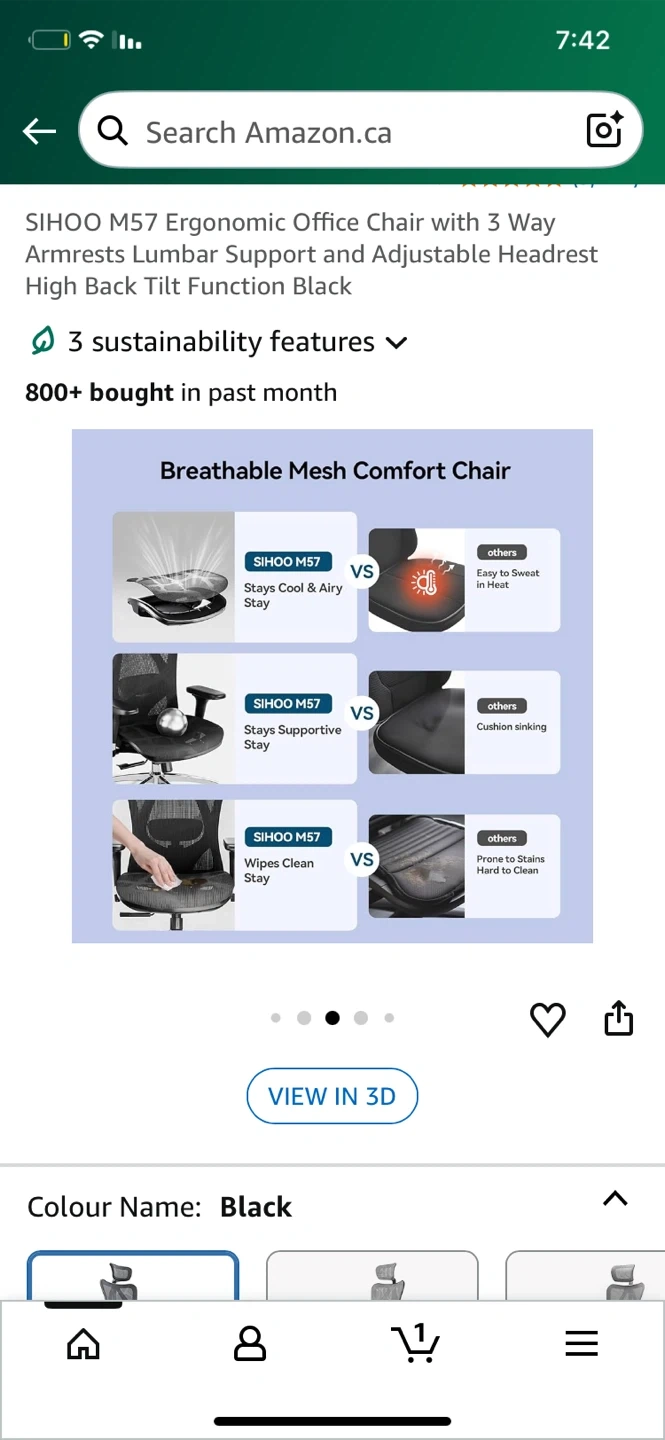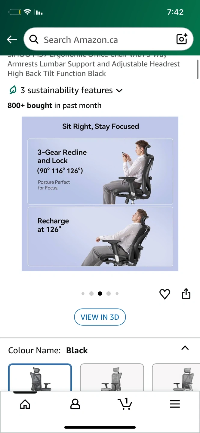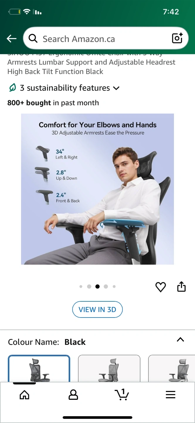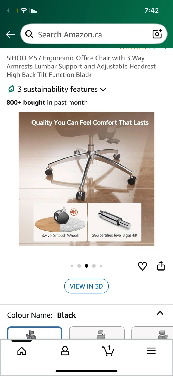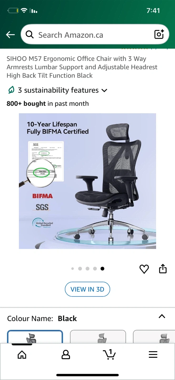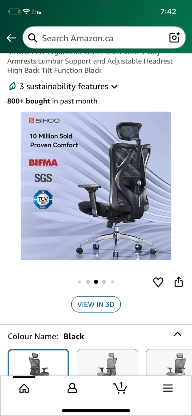 SIHOO M57 Ergonomic Office Chair with 3 Way Armrests Lumbar Support and Adjustable Headrest High Back Tilt Function Black