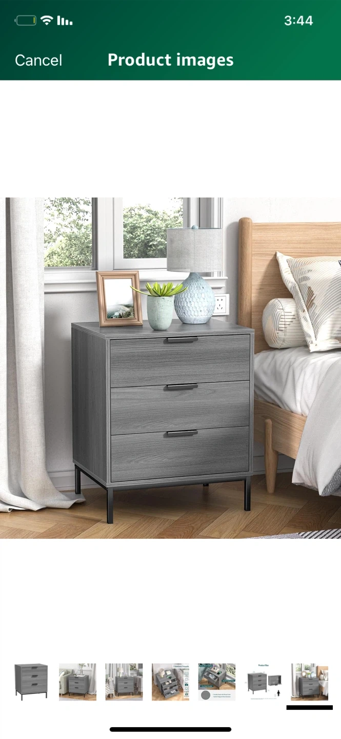 Anmytek Nightstand with 3 Drawers, Modern Wood Night Stand for Bedroom with Storage Drawers, Grey Bedside Table Sofa End Side Table for Dorm... عرض المزيد