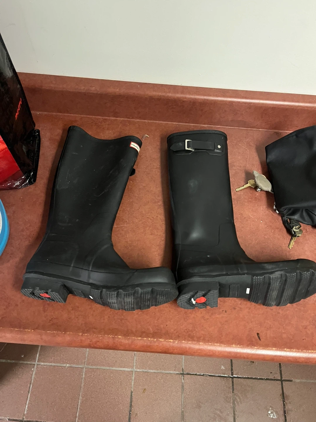 Selling a pair of Hunter rain boots in black. They are in great condition and ready for the rainy season!
