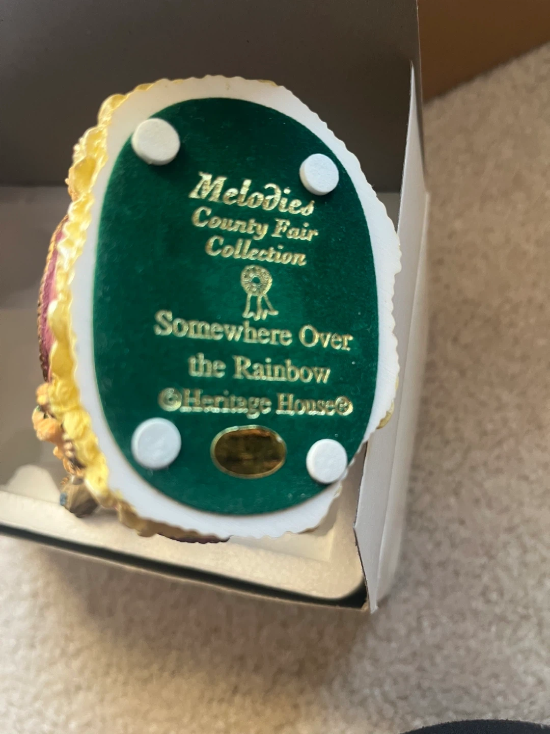 This is a lovely Heritage House carousel horse figurine from the Melodies County Fair Collection. It's titled 'Somewhere Over the Rainbow' and comes with its original box! It would make a wonderful addition to any collection or a sweet decorative piece for your home
