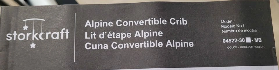 Storkcraft convertible crib and mattress. Model: Alpine 04522-301-MB