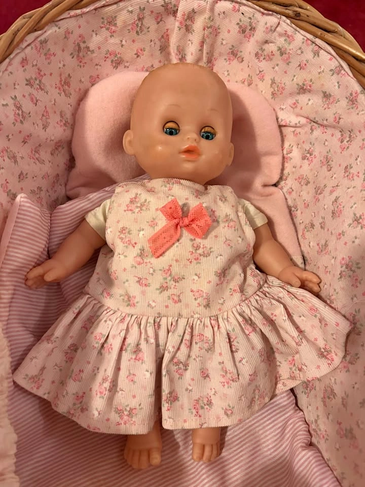 5Adorable French baby doll and wicker pram set from around 2016–2017. The set includes a lifelike baby doll dressed in a pink floral outfit, nestled in a handwoven wicker pram with wooden wheels, soft bedding, and a canopy. 🧸 Details: • Brand: Corolle • Origin: France • Includes baby doll, wicker pram, canopy, and bedding • Comes with multiple outfits (pants, tops, hat, bloomers, extra dress) • Includes pink storage case for doll and clothes • Gently used, clean and well cared for A sweet, high-quality doll set from a collectable brand. 📦 Condition: Excellent pre-owned 🎀 Sold as a complete set