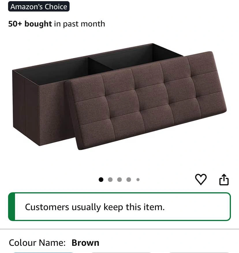 Keep your home tidy and stylish with the SONGMICS 110 cm Folding Storage Ottoman Bench. With its warm brown finish and padded seat, it adds comfort and elegance to your living room, bedroom, or entryway.