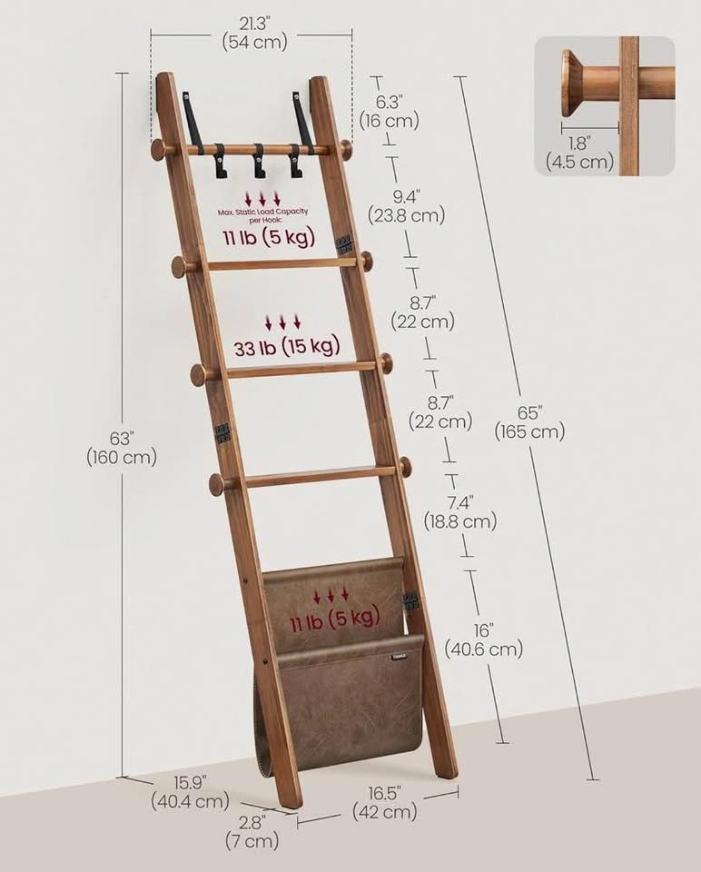 VASAGLE 5-Tier Blanket Ladder – Stylish, Functional, Farmhouse C