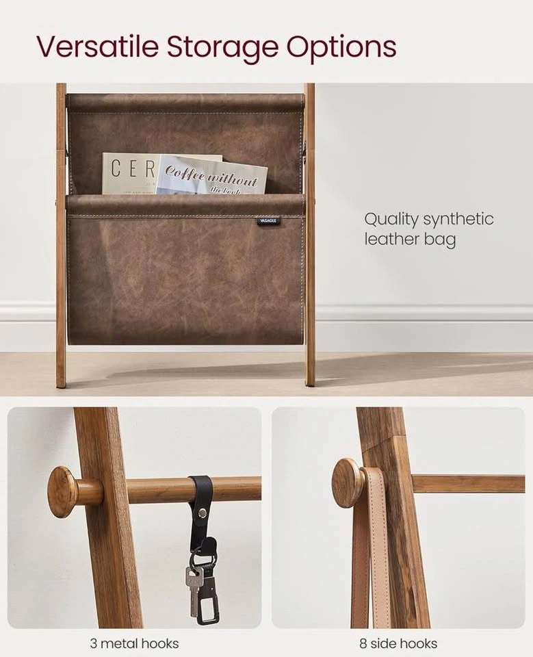 • Includes a synthetic leather storage bag for remotes, magazines & more