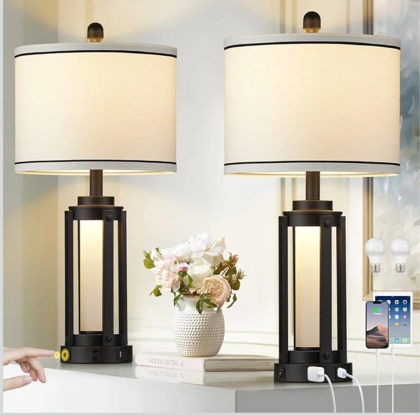 Set of 2 Bedside Lamps w/ USB Ports