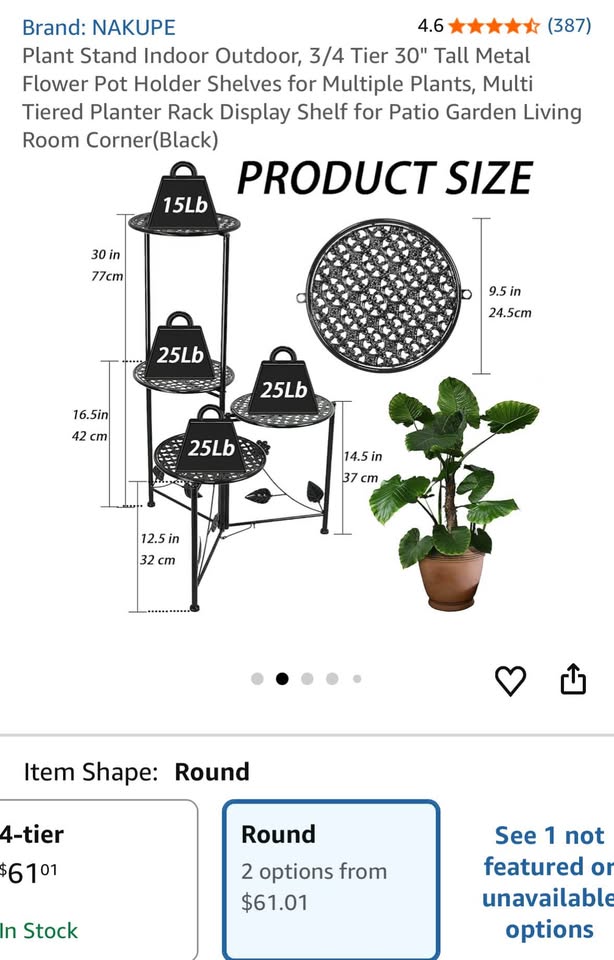 New 3/4 Tier 30" Tall Metal Flower / Plant Stand