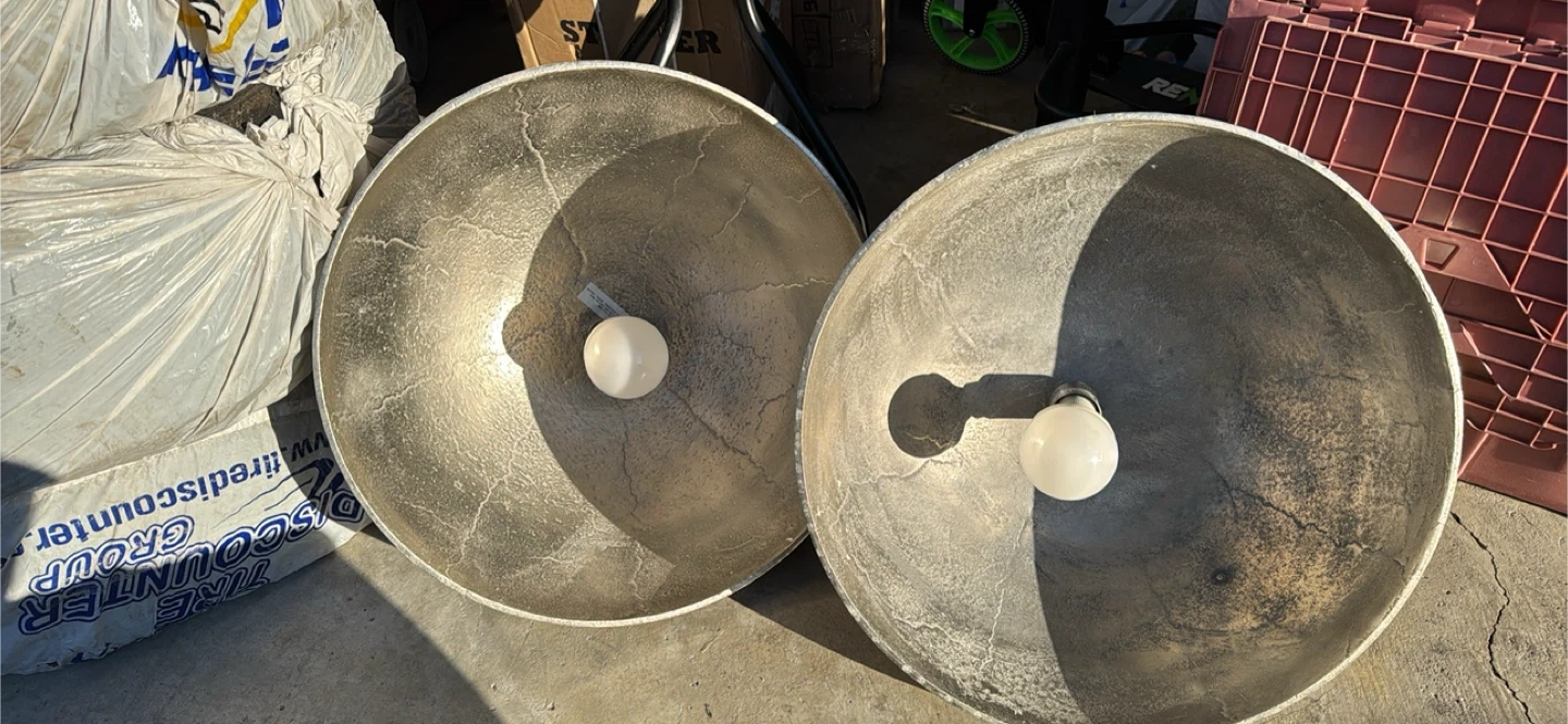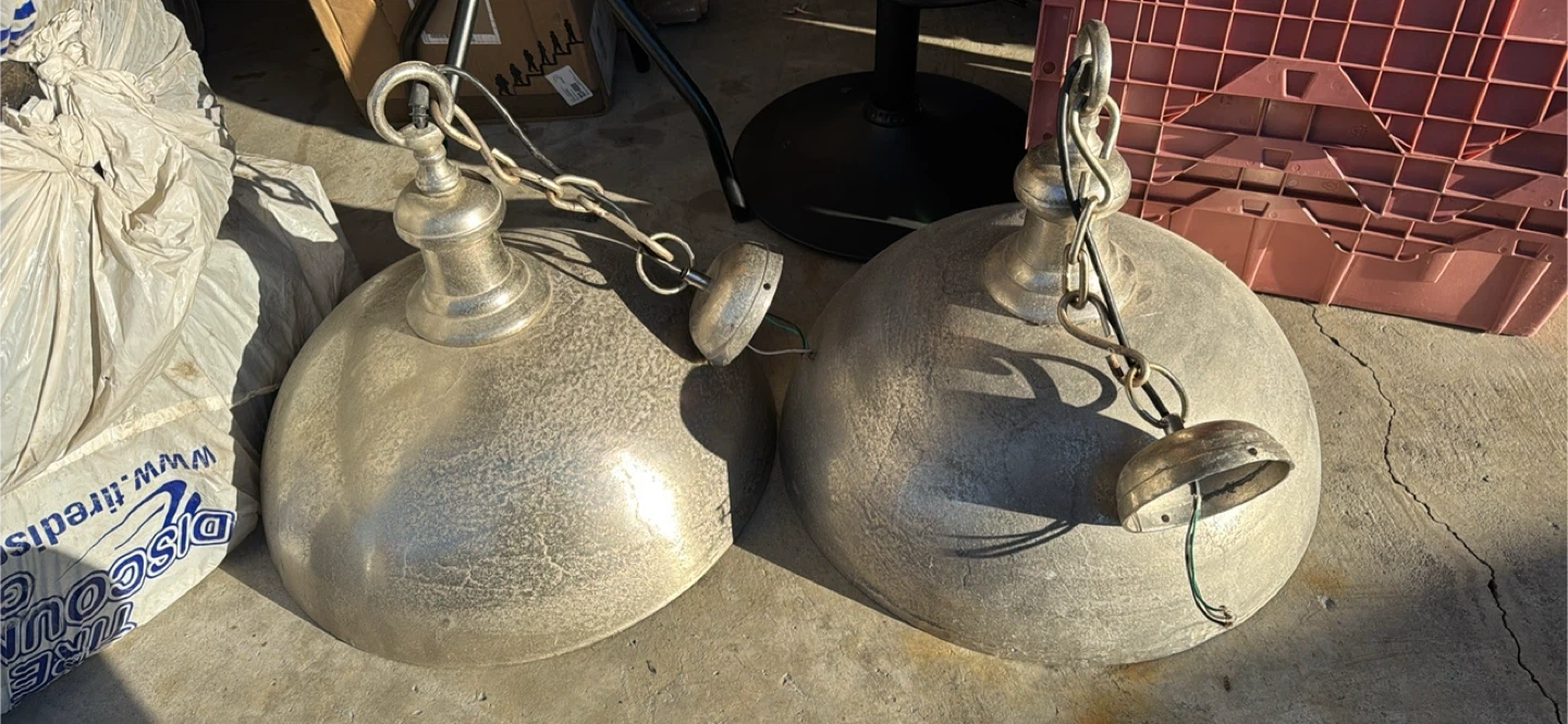 Selling two PR Home Liverpool pendant lamps in rustic silver! They're 50 cm in diameter and would add a nice touch to any room. They have a cool, industrial look to them. Get both for a great price