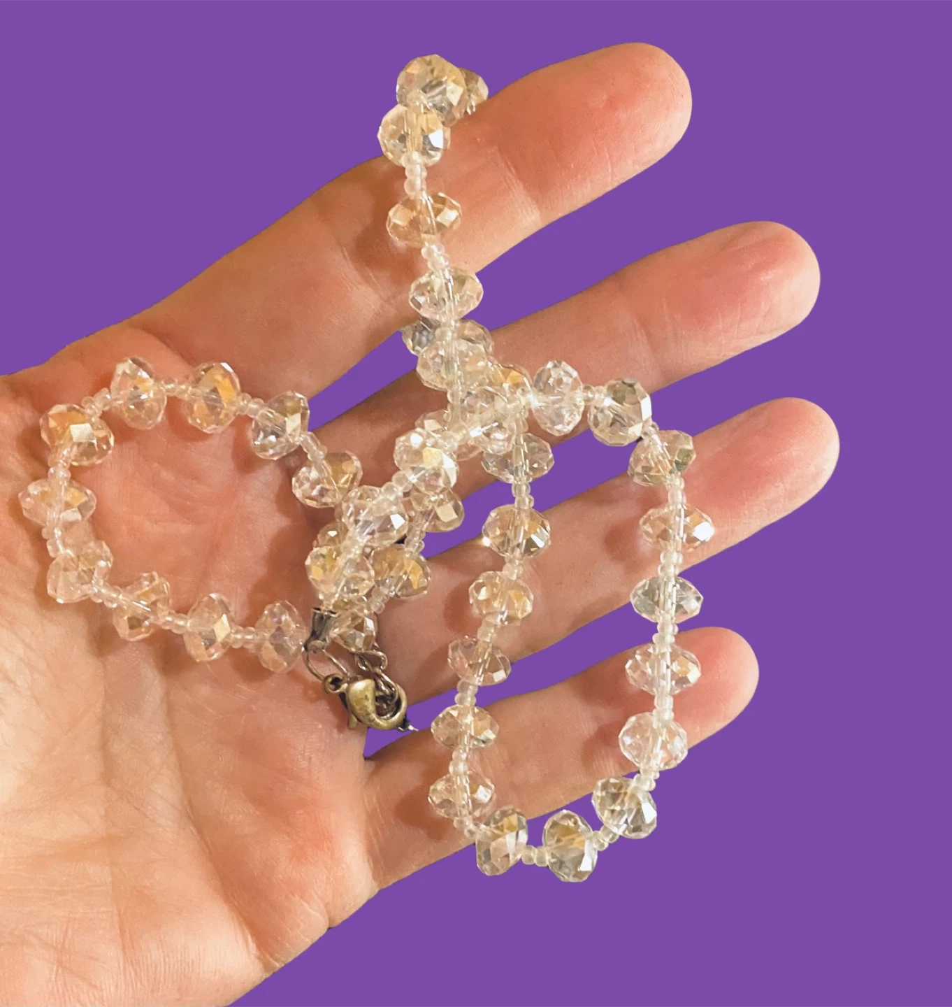 This is a beautiful beaded crystal necklace. It is in great condition and would be a lovely addition to any outfit!