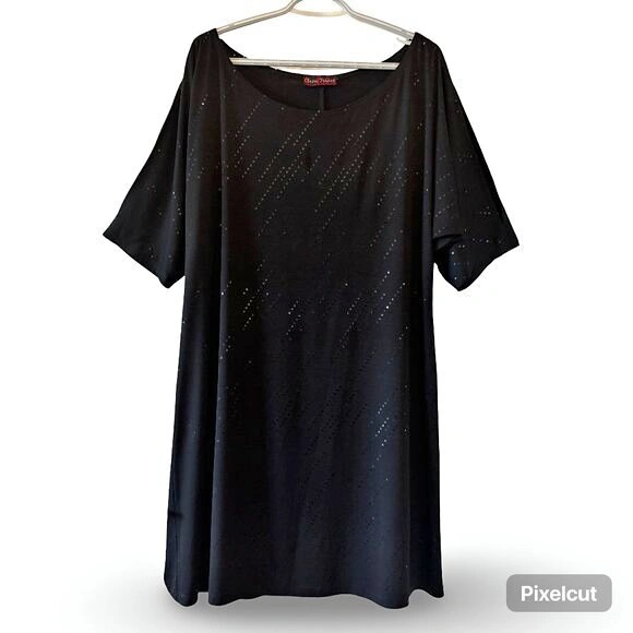 90s Black Sequin Shift Claire France Party Dress – 2X