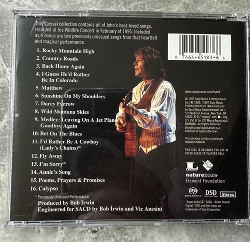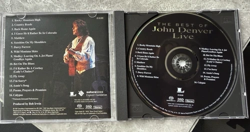 Immerse yourself in the quintessential John Denver experience with "The Best of John Denver Live" on SACD, a collectible that promises superior audio quality. This compilation showcases a versatile blend of rock, country, and folk tunes, capturing the essence of Denver's iconic sound. The multicolored jewel case CD comes complete with the original inner sleeve, ensuring a complete historical package for enthusiasts and collectors alike. Crafted in the United States and released in 1997 by Sony Music Entertainment, this album is a tribute to the enduring legacy of John Denver. Featuring a range of instruments and styles, the album is a celebration of Denver's prolific career, presented in English with live recording features that bring the artist's vibrant performances right to your home audio system.