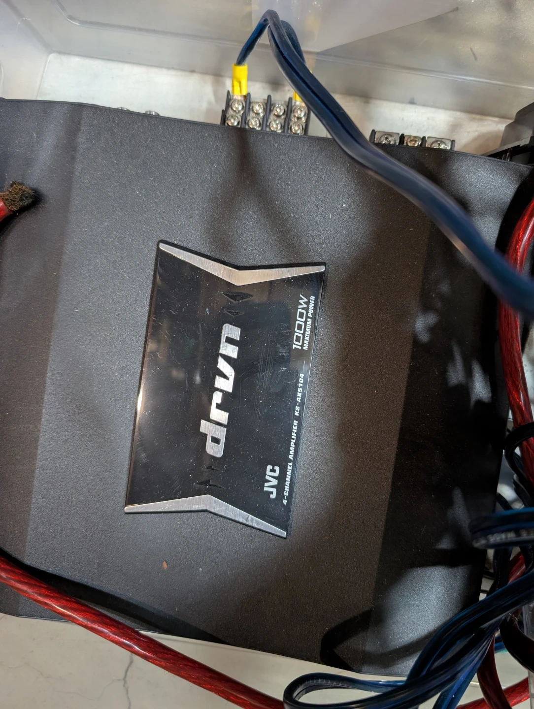 Selling a car stereo system that includes an Alpine CDE-9846 car stereo, a Sony Xplod subwoofer, a JVC 4-channel amplifier DRVN 1000W, and various cables and accessories. It worked the last time I installed it but that was over 10 years ago, I can not guarantee that they all work still, best offer takes the lot, otherwise it's going to donation.