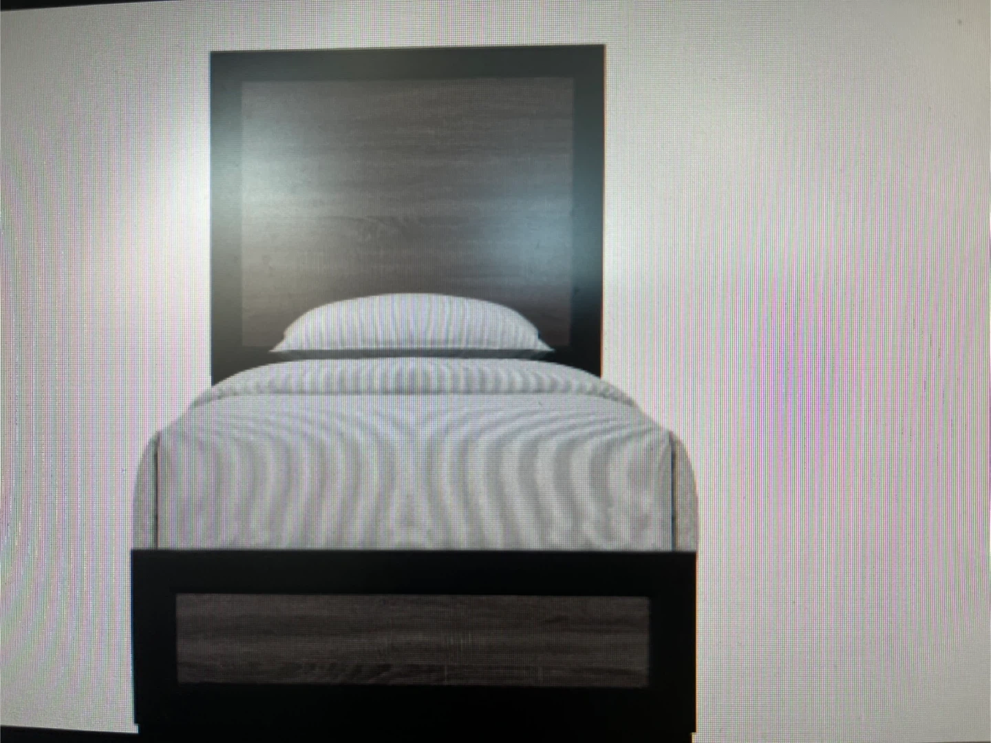 Selling a bed frame with a rustic style. It has a wooden finish and a simple, sturdy design. Perfect for adding a touch of warmth to your bedroom!