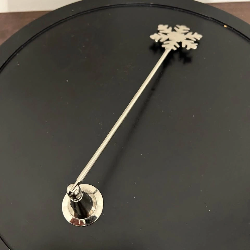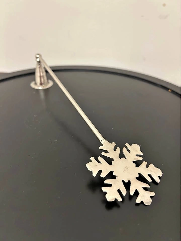 Beautiful metal candle snuffer with a snowflake design — a perfect winter and Christmas décor accent. Great for safely extinguishing candles while adding a festive, elegant touch to your holiday setup. Silver-tone finish, sturdy construction, clean and decorative piece.