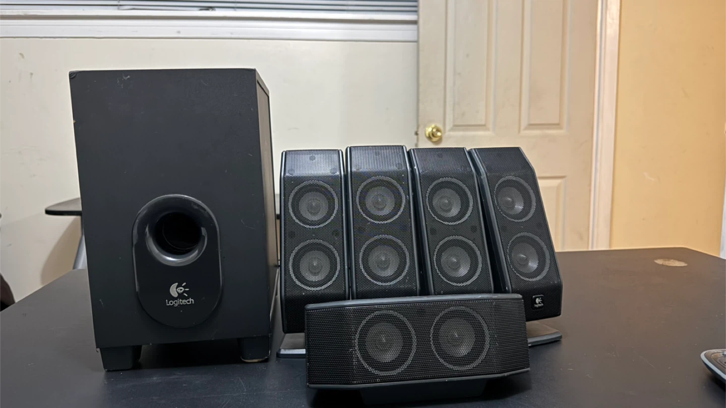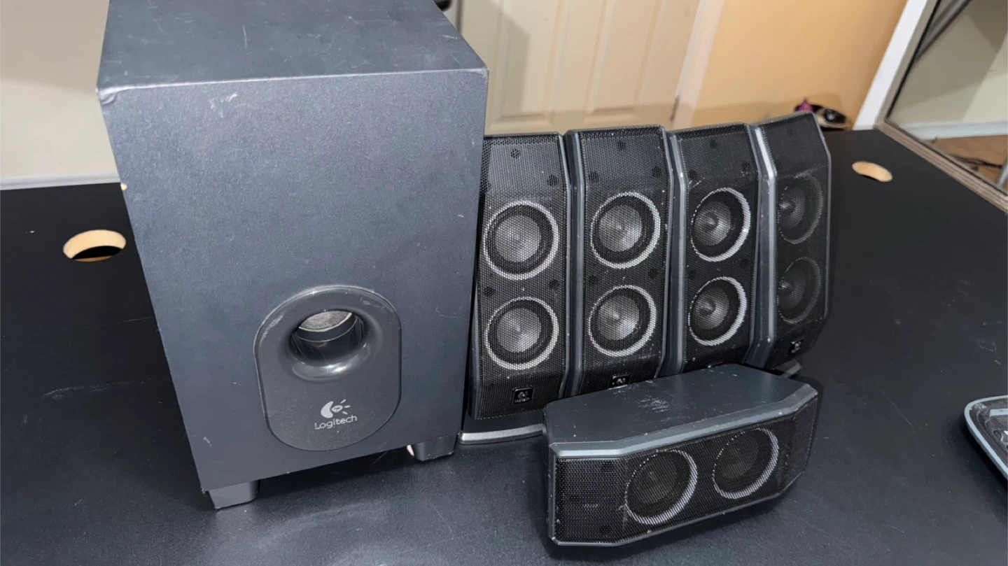 Selling a Logitech Z-5450 Digital 5.1 Speaker System. This speaker system is perfect for creating a surround sound experience in your home. It includes the subwoofer, five satellite speakers, and a control pod for easy adjustments. Great for movies, music, and gaming!