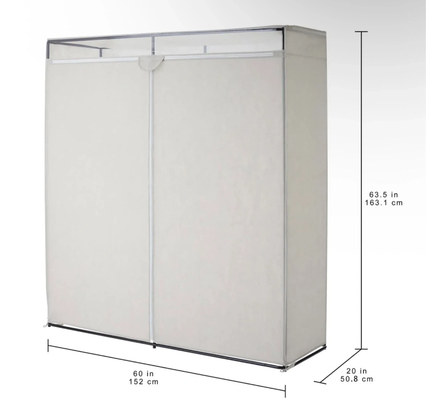 Looking to sell this portable closet organizer! It features a black frame and is great for adding extra storage space. The dimensions are approximately 60 inches in width, 20 inches in depth, and 63.5 inches in height