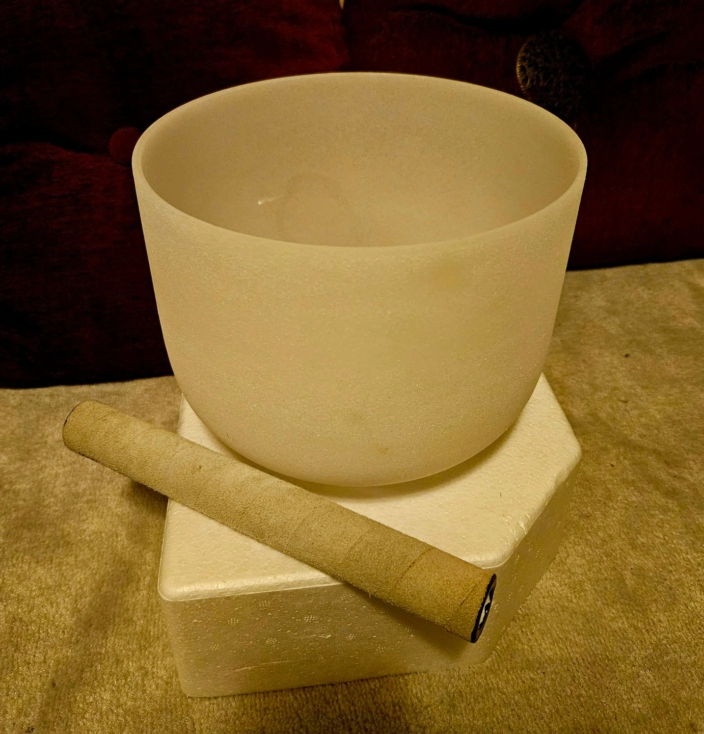 Selling a 10 inch white crystal singing bowl, complete with a striker. It's in great condition and ready to bring some peaceful vibes to your space!