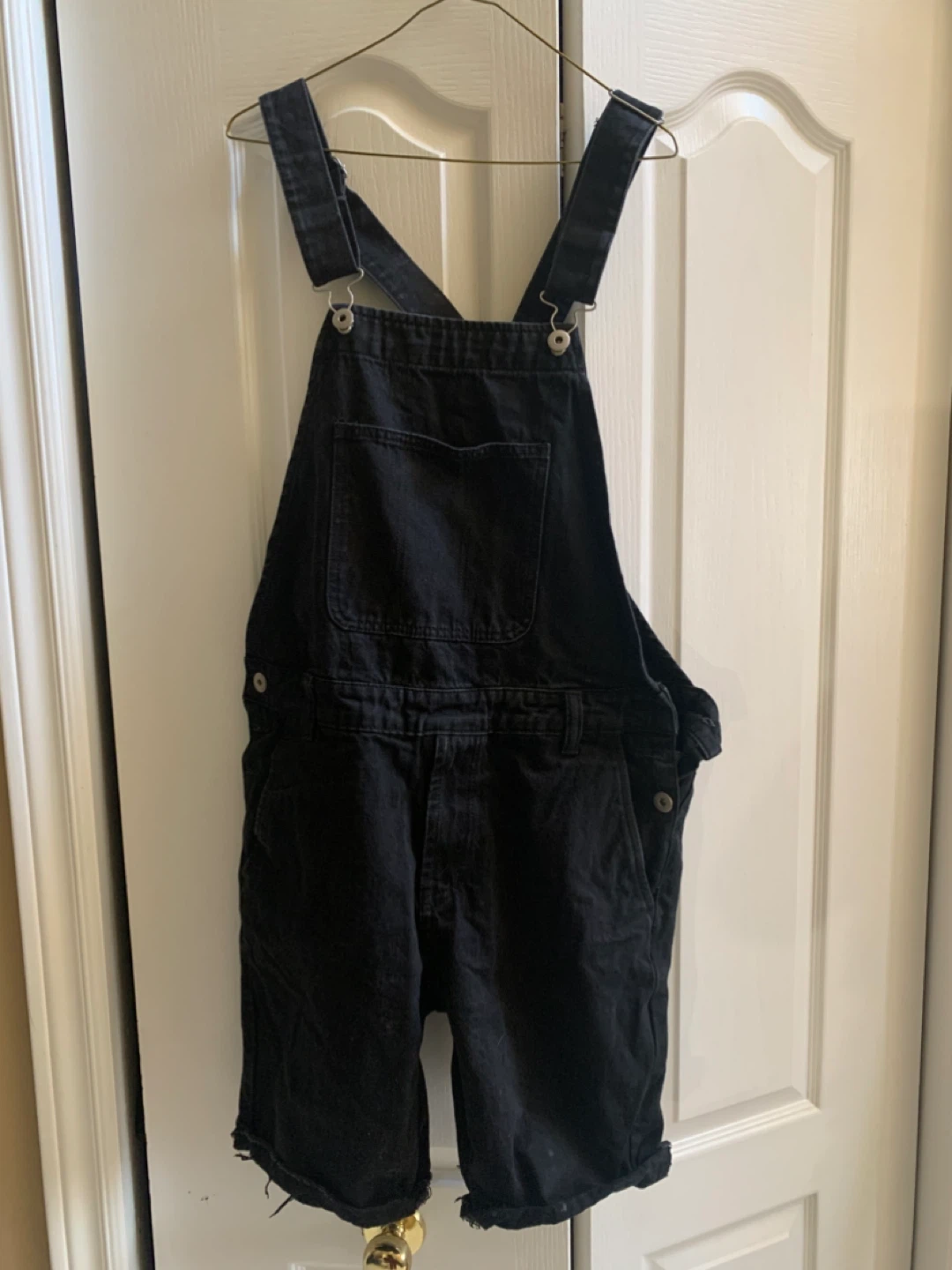 Selling a pair of black denim overalls shorts. They're in great condition and ready for a new home! Perfect for a casual, laid-back look. Forever 21 brand. You can try on. Smoke free pet friendly home.