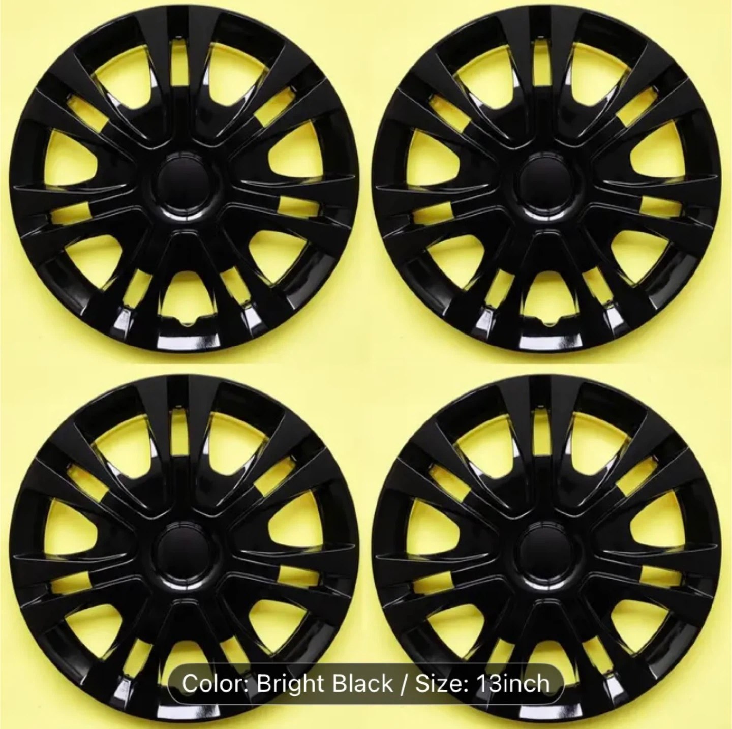 Selling a set of four 13-inch wheel covers in bright black. They're in great shape, brand new never used and ready to give your ride a fresh look. Not the classical snap in appliance but they are universal.