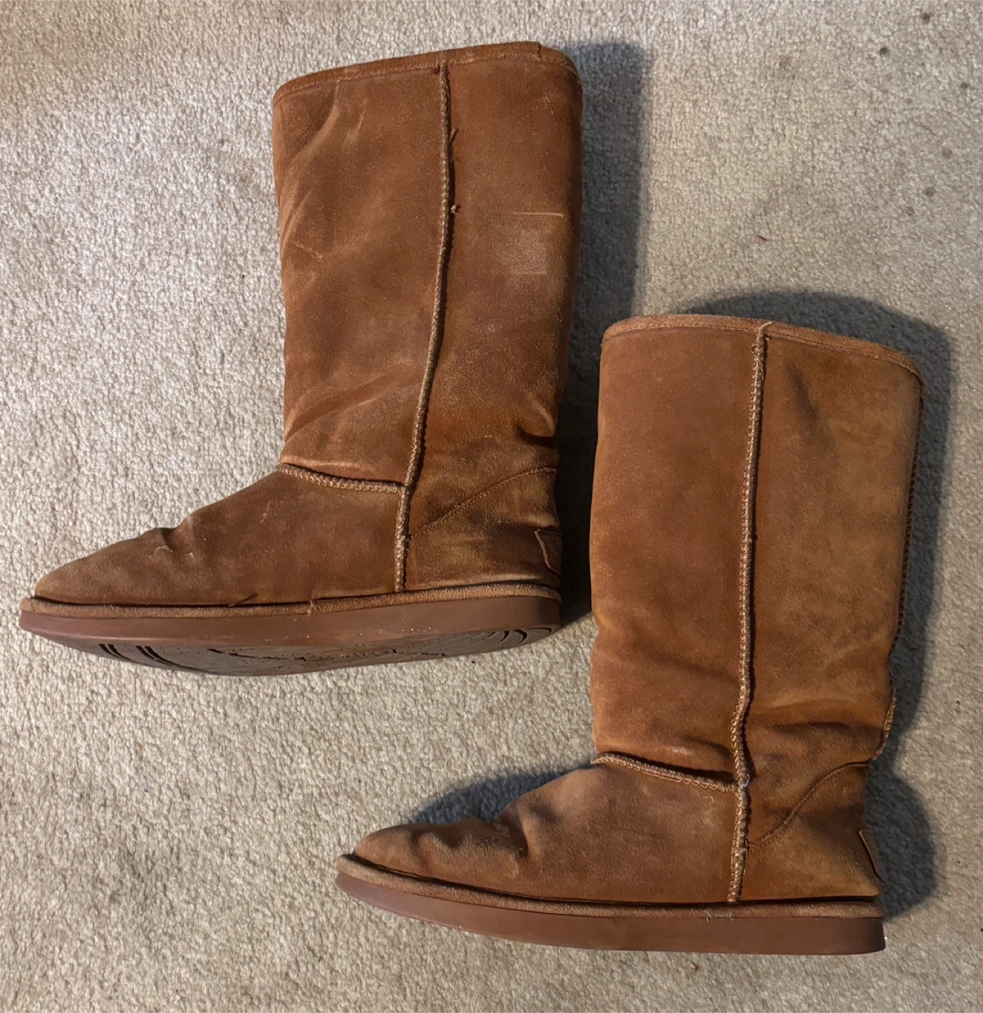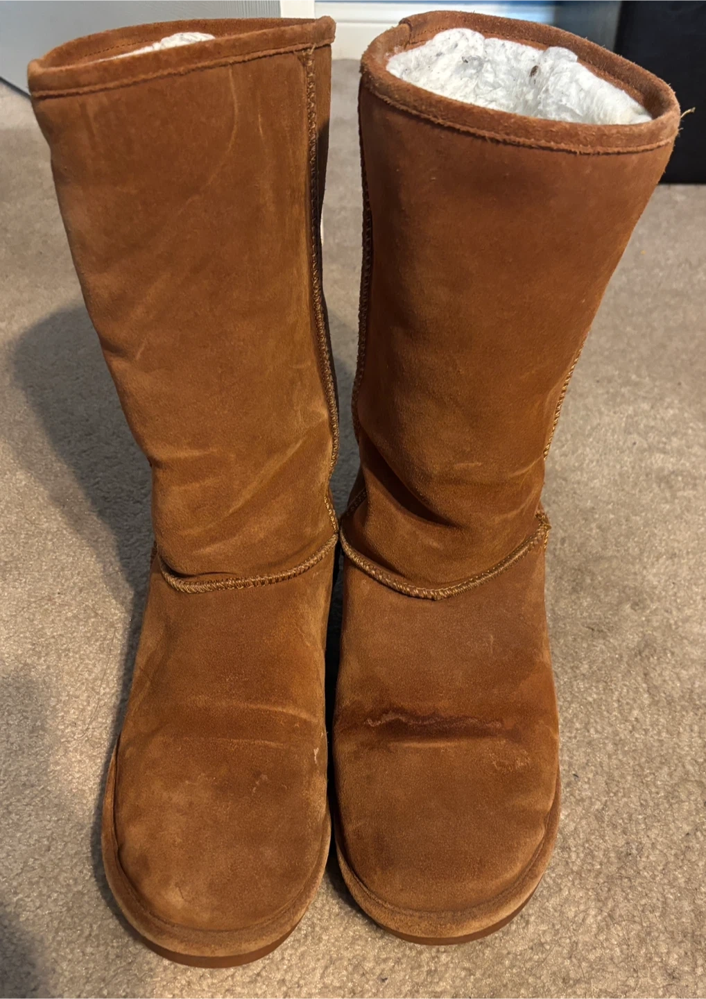 Selling a pair of SoftMoc boots in brown leather. They are a size 11. The interior is lined with a cozy white material. Perfect for the colder months! Suit both by men or women