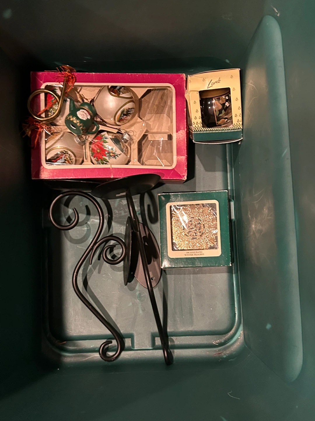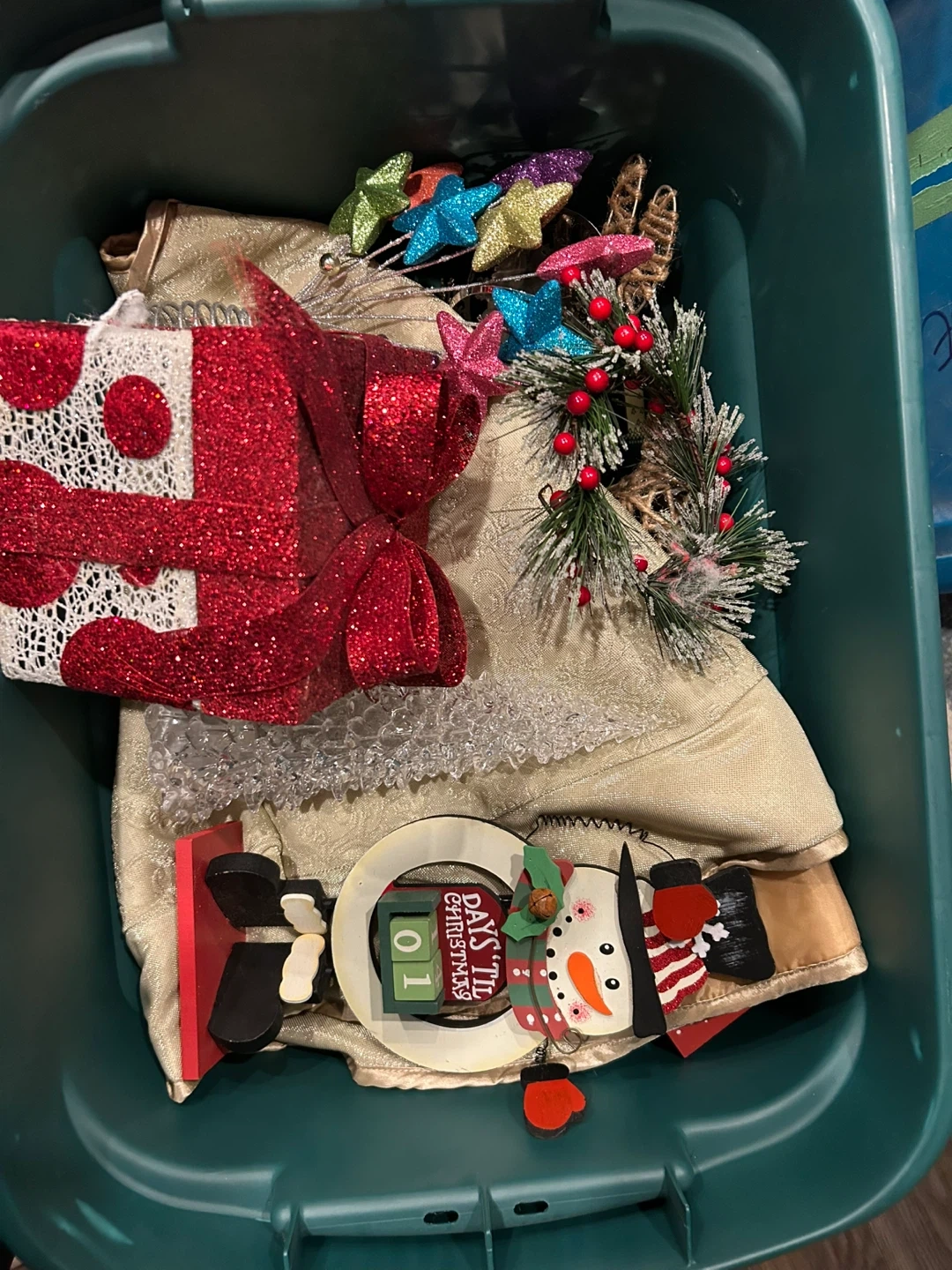 Selling a bundle of Christmas decorations. Includes various ornaments, lights, and decorative pieces. Perfect for adding some holiday cheer to your home!