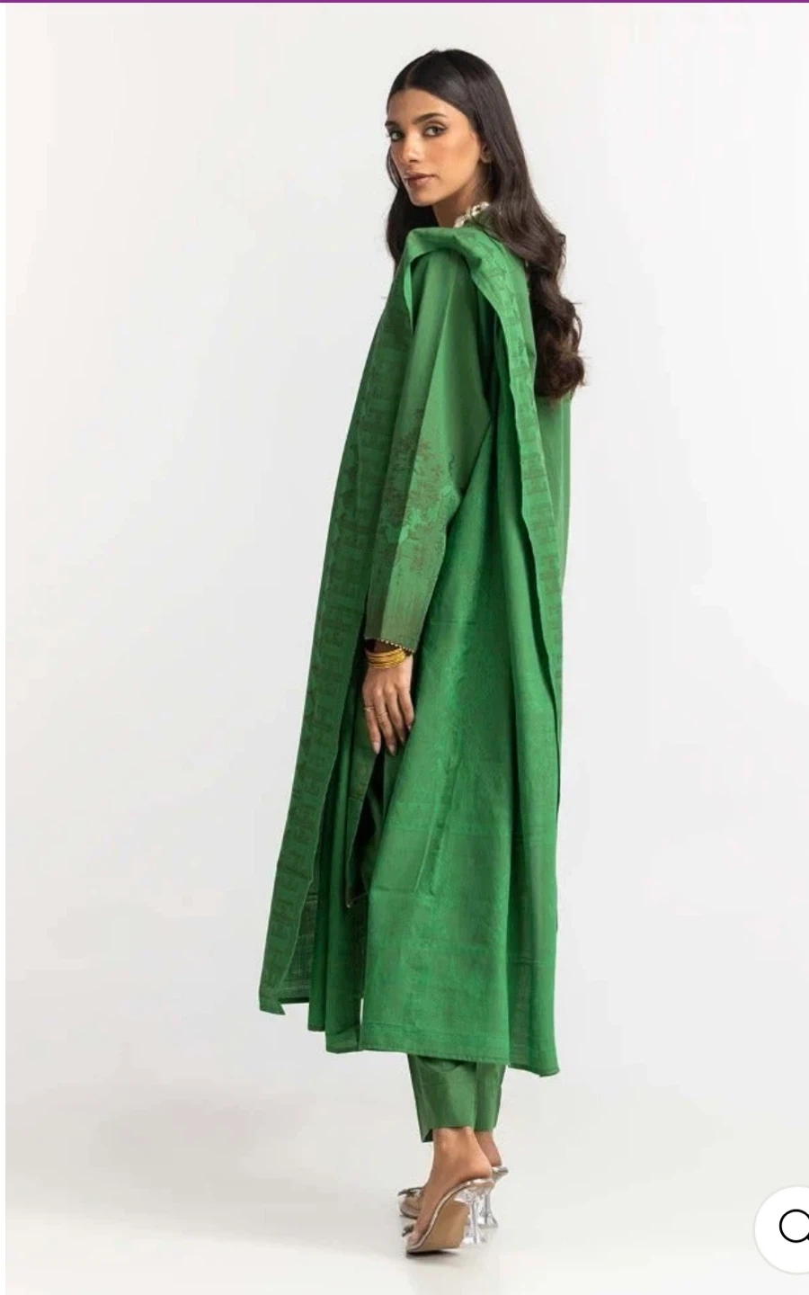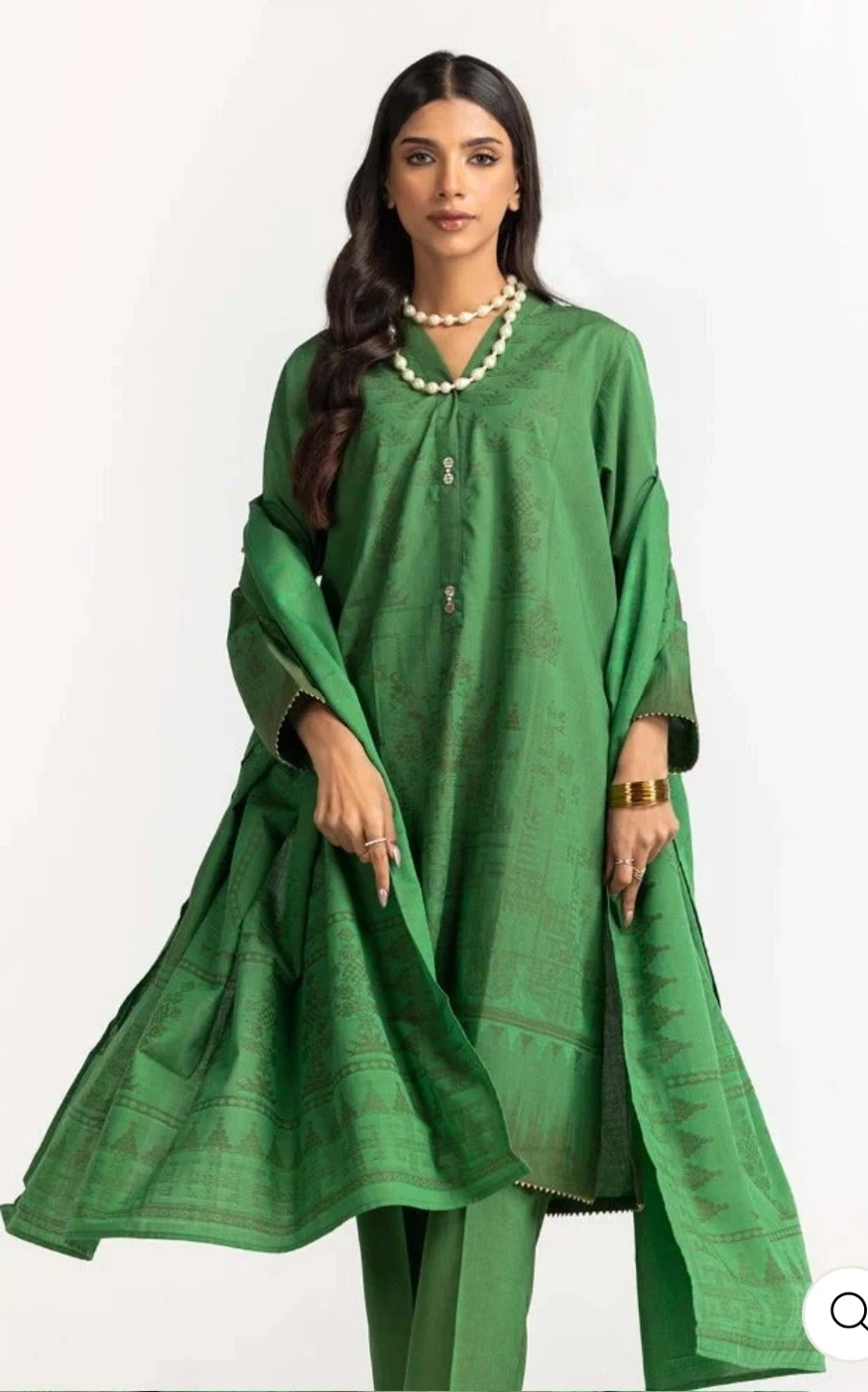 Green Shalwar Kameez three piece jacquard suit