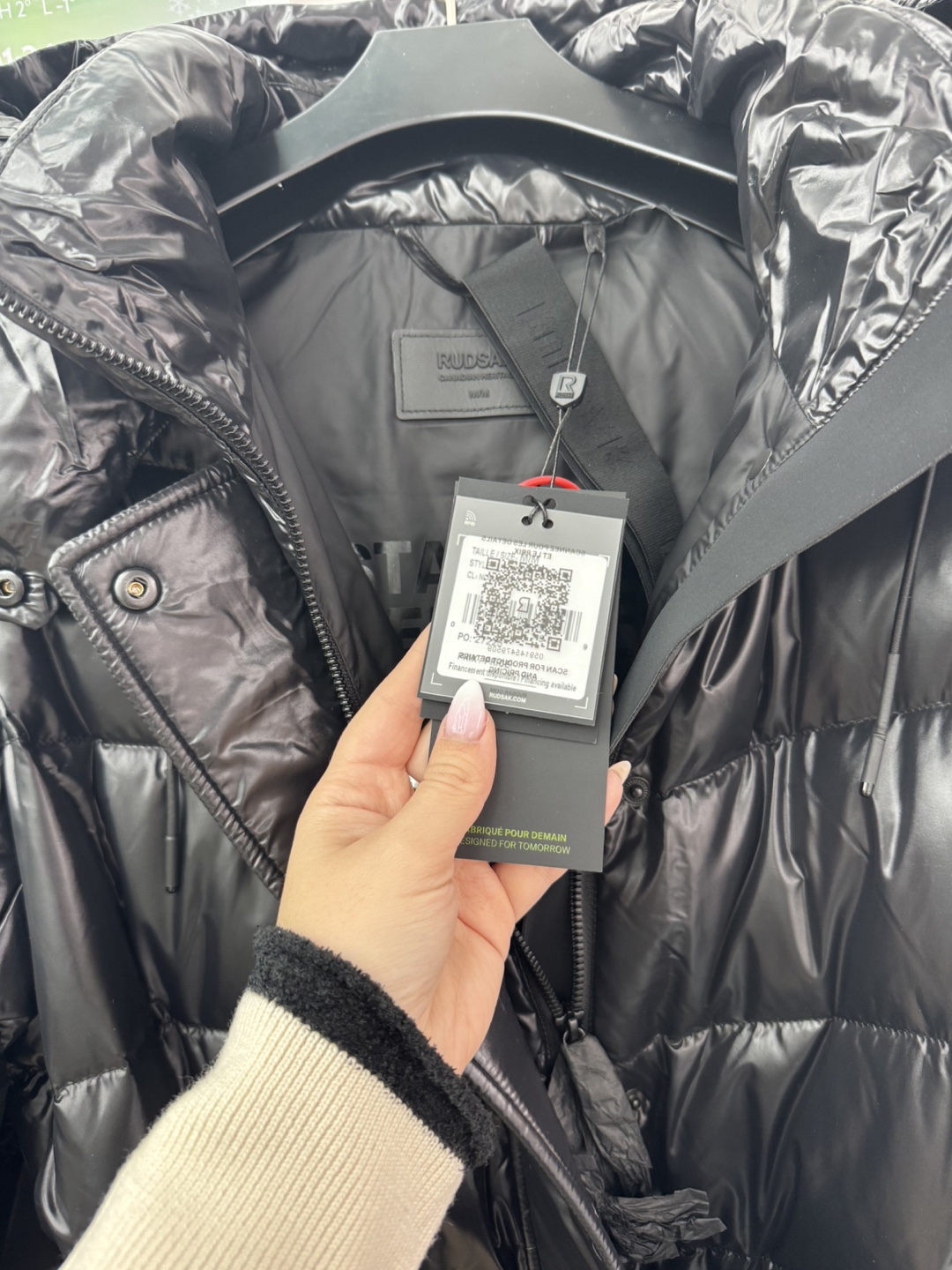 Selling a Rudsak black down puffer coat! It's in great condition and perfect for the cold Canadian winter. The coat features a stylish belt and a sleek, shiny finish. This is a stylish and functional outerwear piece!