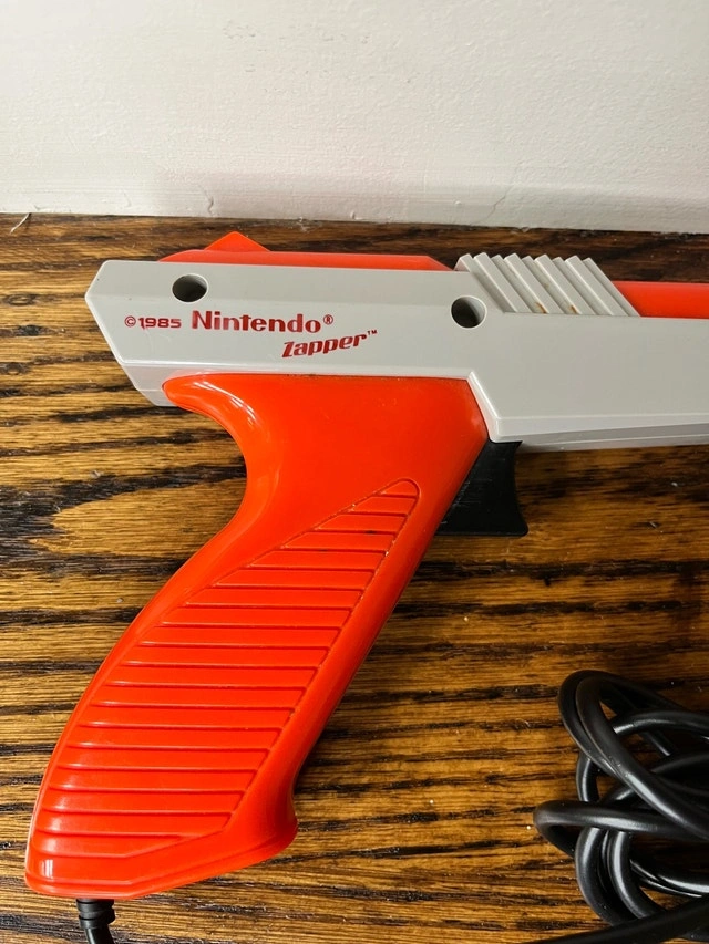 Get ready for some retro gaming fun with this classic Nintendo Zapper light gun! This iconic grey and orange Zapper is in very good used condition, ready to bring back memories of Duck Hunt and other NES classics. A must-have for any serious Nintendo collector or vintage gaming enthusiast. It's in good condition and fully functional. Bring some nostalgia into your life! Check out my other listings for more cool stuff!