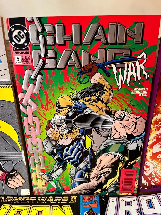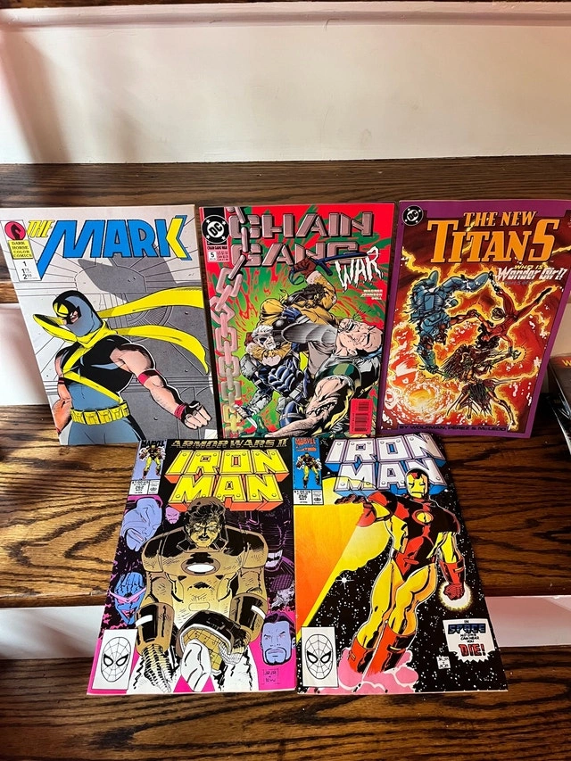 Dive into a world of classic adventures with this collection of used comic books! This lot includes titles like Iron Man, The Mark, and The New Titans, offering a mix of Marvel and DC action. Perfect for collectors or anyone looking to revisit these vintage stories. * Titles: Iron Man, The Mark, The New Titans, Chain Gang War * Condition: Used, with some wear consistent with age but in really good overall condition. Check out my other listings for more cool stuff!