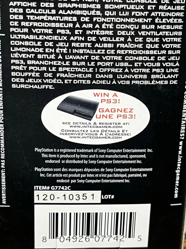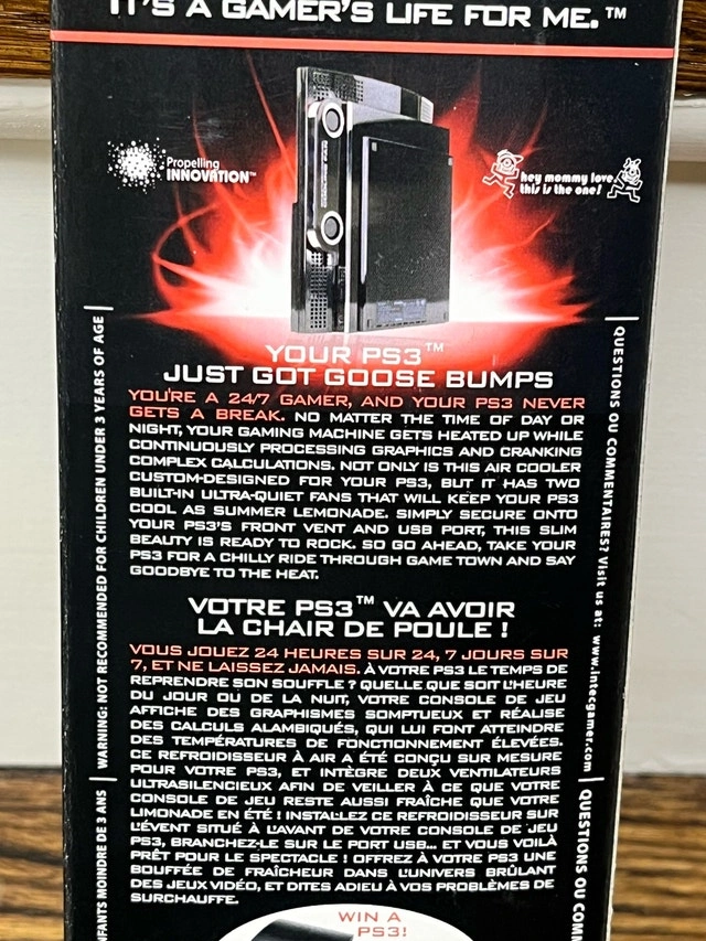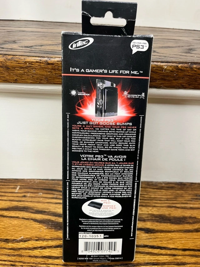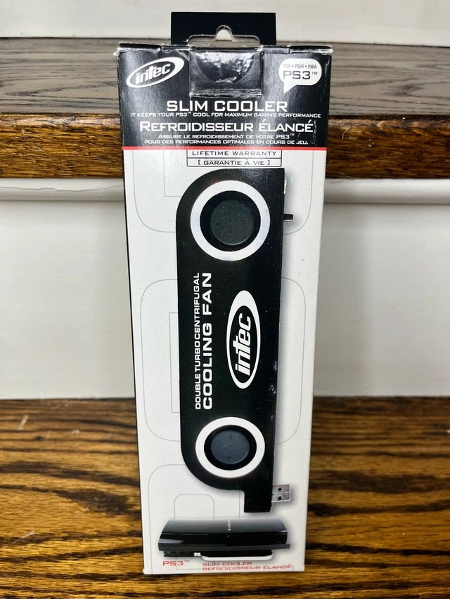 Enhance your PlayStation 3 A01 or B01 cooling performance with the new Intec Slim Cooler. This double-turbo centrifugal cooling fan is designed to keep your console running cool, even during those marathon gaming sessions. It's easy to install and helps prevent overheating. Kind of a rare piece for a collection. You could pop it on your backwards compatible A01. Doesn’t quite fit the same on an E01 I think. * Designed for PlayStation 3 consoles * Double-turbo centrifugal fan * Easy to install * Helps prevent overheating Check out my other listings for more cool stuff!