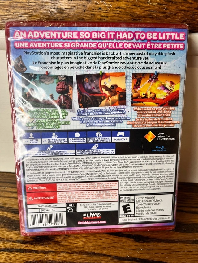 Dive into a world of creativity with Little Big Planet 3 for PlayStation 4, a brand new and sealed game that promises endless fun and adventure for players of all ages!